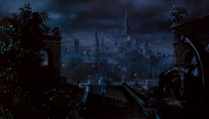 À ce niveau, Freddy 3 et 4 étaient plus fonctionnels dans leur mise en scène, alors que Freddy 5 regorge d’idées, d’effets de styles, d’effets de mise en scène, et tentent énormément de choses. Hopkins amène une direction artistique également originale pour le film, avec un style très gothique, notamment lorsque le film se déroule dans le monde des cauchemars, avec ces tours gigantesques, ses pièces partant dans tous les sens, et le réalisateur s’amuse avec pas mal de techniques, comme des miniatures, des fonds peints, un jeu d’ombre travaillé et parfois poussé. Du tout bon visuellement, et il faut bien ça finalement pour nous faire oublier que scénaristiquement, cet opus est très faible. Car si Le Cauchemar de Freddy ne prenait au niveau de son scénario aucun risque et enchaînait donc les scènes de meurtres avec un scénario prétexte pour relier les scènes, c’est ici bien différent. Voir l’opposé, même si le résultat est le même : le scénario est très faible, bien tiré par les cheveux et parfois sans réel intérêt. Mais Freddy 4 était bourrin, enchainait les meurtres puisqu’il n’avait rien d’autre à proposer, alors que cet Enfant du Cauchemar lui se fait avare en mise à morts (seulement trois sur tout le film, là où il y en avait trois seulement sur la première demi-heure du précédent), mais essaye de mettre en avant une ambiance bien marquée, gothique, et se permettra même quelques scènes assez glauques, comme les scènes nous montrant le sort réservé à la mère de Freddy avant sa naissance. D’ailleurs, même au niveau sonore, ce cinquième opus tente d’avoir un style bien à lui, plus calme, plus onirique. Et personnellement, ça a toujours beaucoup marché sur moi. J’adore l’ambiance de ce cinquième opus. Ça ne fera par pardonner ses nombreux défauts, mais ça prouve que le réalisateur a eu de la liberté pour faire ce qu’il voulait visuellement, pour tenter de mettre sa patte sur le film.