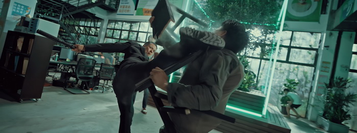 Le scénario ne s’emmerde pas et se contente d’utiliser le post-it qu’ont déjà utilisé certains petits copains où il est écrit qu’un papa va prendre d’assaut un repère de malfaiteurs qui ont kidnappé sa fille, ici pour faire du trafic de sang et d’organes. Voilà, une ligne et demi suffisent pour résumer l’intrigue de Furious Attack qui, de toutes façons ne s’emmerde pas trop avec son histoire qui n’est prétexte qu’à faire en sorte que son héros pète des gueules à la chaine, avançant petit à petit comme dans un jeu vidéo jusqu’au boss final. Mais dans l’absolu, pour ce genre de films et ce qu’on est venu à chercher, à savoir de la bonne grosse baston à un rythme effréné, ce n’est pas gênant que ce soit du vu et revu tant que c’est efficace. Le problème, c’est qu’en termes d’efficacité, ce n’est pas tout à fait ça. Le film commence pourtant bien, par une scène de cruauté assez osée pour un DTV chinois, au point qu’on se demande si la censure n’est pas de plus en plus conciliante. Ce côté cruel et un peu sadique, on le retrouvera d’ailleurs tout le long du film et fait partie des quelques points positifs. On a donc un Andy On quasi mutique qui va rencontrer du sbire et des sbires un peu plus consistants et qui va rechercher sa fille jusqu’à tomber nez à nez avec le chef exubérant et ultra caricatural de cette entreprise malveillante incarné par un Philip Ng (City of Darkness) qui cabotine à mort. Le scénario ne s’attarde pas trop sur le comment tout ceci est arrivé et se contente de quelques flashbacks sur la fille disparue du personnage d’Andy On et la relation fusionnelle qu’ils avaient. Les scènes de combats sont problématique car montées n’importe comment, et entre la caméra qui bouge n’importe comment et le monteur qui a décidé qu’il n’y aurait pas un plan de plus d’une demi-seconde, c’est sincèrement visuellement très moche, en plus de faire mal aux yeux. Pour ceux qui connaissent la fameuse vidéo qui compte le nombre ahurissant de coupes dans une scène de course poursuite du film Taken 3, nous sommes dans le même genre de choses au niveau de l’action ici. C’est dommage car quand on connait les talents martiaux d’Andy On, on ne peut pas s’empêcher de constater le gros gâchis que sont ces scènes d’action. Restent malgré tout quelques très courts moments où le monteur a dû s’endormir et a laissé défiler deux secondes sans tout charcuter et le mini-plan séquence dans le train.