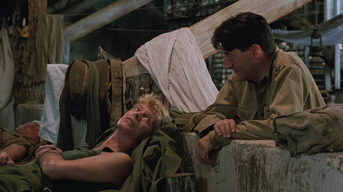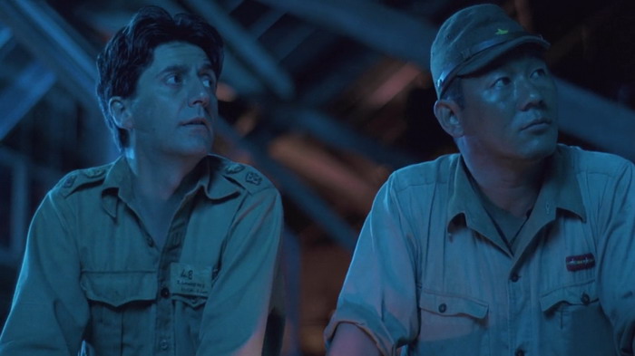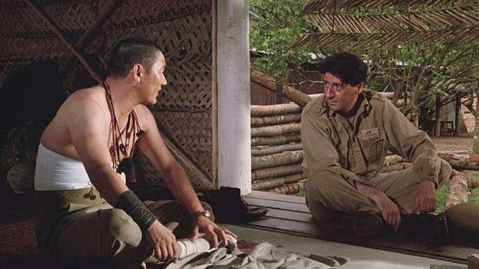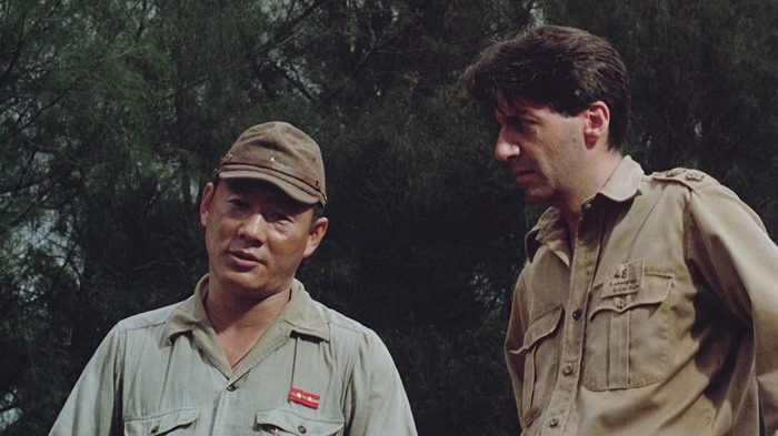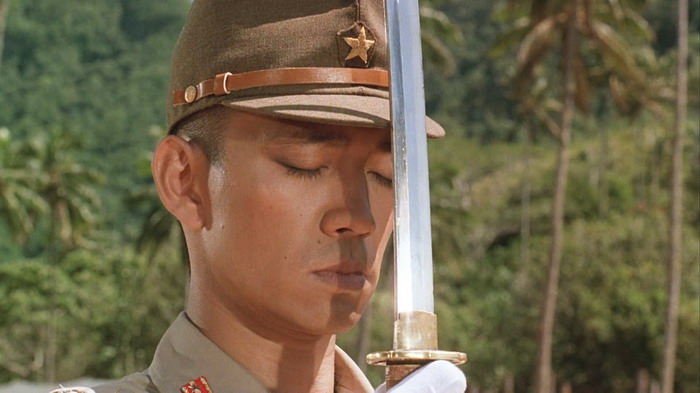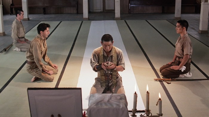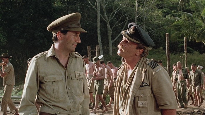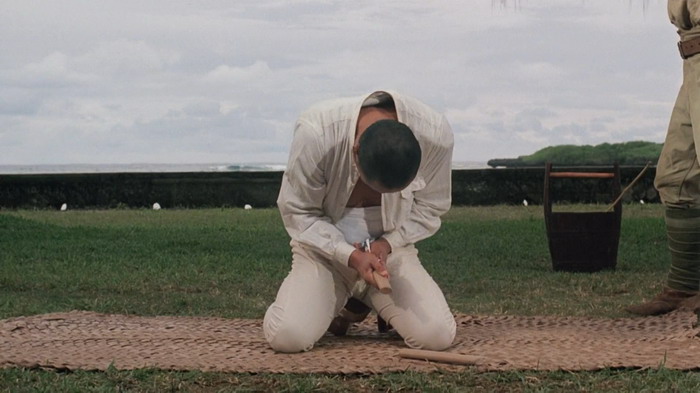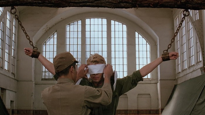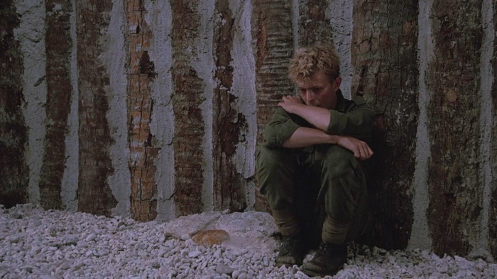 Le casting est clairement une des forces du film et le quatuor composé de David Bowie, Tom Conti, Ryûichi Sakamoto et Takeshi Kitano nous scotche à l’écran, par leurs interactions donc, mais aussi et surtout par les émotions qu’ils arrivent à faire passer via les luttes physiques et psychologiques de leurs personnages. Parce que dans Furyo, le manichéisme est très rapidement laissé de côté. Comme le dit le personnage de Tom Conti, il est la victime d’hommes qui sont convaincu d’avoir raicon, tout comme les japonais étaient convaincus d’avoir raison. Le film d’Ôshima est une représentation réaliste de la nature humaine en temps de guerre qui ne tombe jamais dans la caricature ou le cliché du bien contre le mal. Sa mise en scène est forte, il sait ce qu’il veut montrer et ne commet pas l’erreur d’être trop indulgent ou dramatique envers les crimes commis par son pays. L’auteur du livre dont le film est basé a d’ailleurs déclaré « C’est le seul film de guerre que j’ai vu qui n’exploite pas le drame superficiel et les horreurs de la guerre, mais qui pénètre dans les origines et la signification de la guerre dans l’esprit humain. De plus, il est honnête et courageux, et regarde avec le même regard franc et sans détour le caractère des Japonais et des Européens. ». Du coup, on ressent tour à tour de l’affection et de la tristesse pour les quatre personnages, une tristesse souvent accentuée par l’excellente bande son mélancolique de Ryûichi Sakamoto, qui incarne également le colonel Yonoi. Si on ajoute à cela une très belle photographie, tout comme les décors et les environnements, on obtient un film réellement marquant, qui explore le côté sombre de l’esprit humain et la lutte des valeurs humaines en temps de guerre. Il est à noter que Furyo explore la thématique de l’homosexualité en tant de guerre, fait assez inhabituel dans ce genre de film, avec en particulier une scène relativement homoérotique, bien que pas assez exploitée.