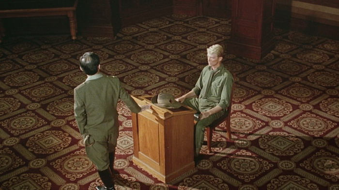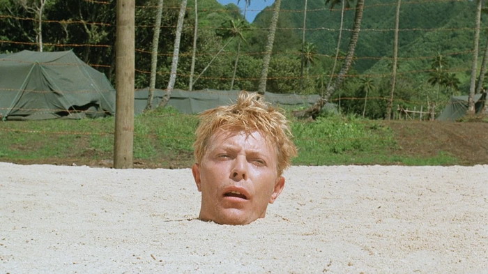 Furyo ne ressemble pas aux habituels films sur des prisonniers de guerre. Il raconte d’histoire d’officiers alliés détenus dans une prison japonaise sur l’ile de Java, mais au lieu de se concentrer sur les habituelles tentatives d’évasion, il s’agit plutôt ici d’un traité sur la condition humaine qui explore la nature de la guerre et de l’esprit humain, de la lutte pour la justice et l’honneur. Pour clairement apprécier le film, il faut avant tout essayer de comprendre la culture des prisonniers à l’époque, mais aussi et surtout de leurs geôliers. Pour les prisonniers, c’est une conséquence malheureuse mais temporaire de la guerre. Ils en ressortiront normalement vivants puisque la Guerre semble proche de se terminer, en leur faveur. Pour les geôliers japonais, ce n’est pas le même point de vue et pour eux, ceux qui se sont rendus plutôt que de mourir au combat sont des lâches, indigne des geôliers mais aussi de vivre et donc sacrifiables. Certains des officiers du camp tentent de les rééduquer, selon leur point de vue à eux, afin de leur montrer comment un véritable guerrier vit et meurt (avec un harakiri qui doit être public). On y voit les tensions qui peut y avoir entre les soldats britanniques et leurs gardes japonais. Mais Furyo s’attarde surtout sur quatre personnages. Il raconte l’histoire du prisonnier John Lawrence, qui tente de mettre en place des liens entre les deux cultures qui s‘affrontent. On nous raconte l’histoire du prisonnier Jack Celliers, rebelle et provocateur, qui vient semer la pagaille dans l’esprit du colonel Yonoi. C’est donc aussi l’histoire du colonel Yoroi, arrogant et taciturne, chef du camp des prisonniers qui s’efforce de faire fonctionner son camp mais qui est trop ancré dans des traditions. Enfin, on nous raconte l’histoire du sergent Hara qui à aucun moment ne cherche à comprendre les prisonniers, mais qui pourtant sait se montrer également sympathique. Les interactions entre ces quatre personnages sont réellement intéressantes et ils vont permettre à l’histoire d’atteindre un climax qui laisse une forte impression, avec un ultime plan réellement bouleversant.