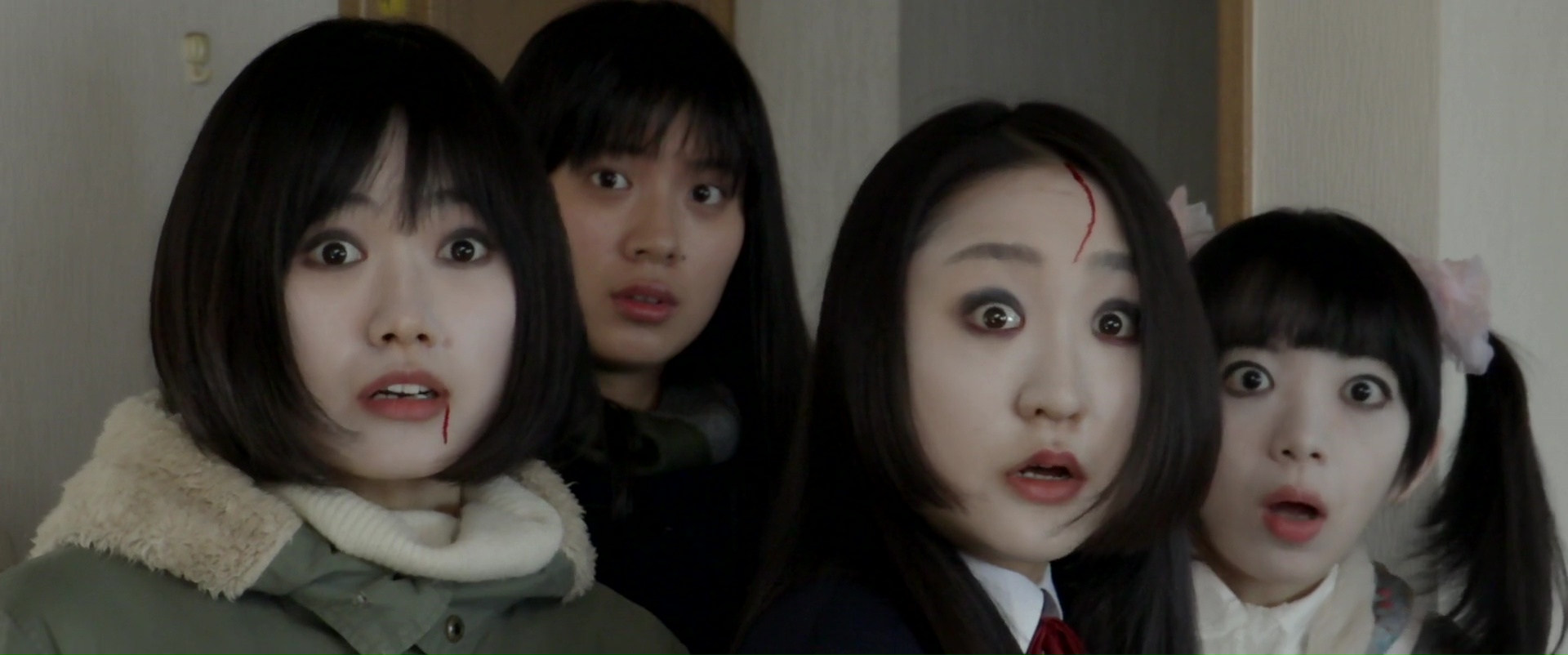 Je retire tout le bien que j’ai pu dire d’Iguchi lorsque j’ai vu son dernier film, The Flowers of Evil, adaptation de manga qu’il n’avait pas écrit, et s’était donc contenté de réaliser, calmant ainsi son style et étant forcé d’obéir aux studios. Non, Iguchi n’a pas changé, Iguchi ne s’est pas calmé, Iguchi est toujours un sacré cancre. Qui certes traite toujours ses films avec une honnête presque touchante, mais qui est toujours un bien piètre technicien, et qui, lorsqu’il écrit, reste persuadé qu’avoir une idée rigolote lui permettra de tenir sur la durée d’un long métrage. Dernier bouffonnerie du monsieur en date donc, datant de fin 2018, Ghost Squad. La pochette annonce la couleur, on sait un peu à quoi s’attendre, ce sera un petit budget, ce sera léger, ce sera stupide. Résultat des courses. C’est un petit budget, c’est léger, c’est stupide, mais ça ne prend pas. Ghost Squad malheureusement, c’est un peu comme revenir 15 ans en arrière, à l’époque de The Machine Girl. Ou plutôt 10 ans en arrière, à l’époque de RoboGeisha, car Ghost Squad n’est pas gore, malgré quelques effets pratiques réussis, et quelques giclées en CGI toujours aussi moches. Nous suivons donc une jeune femme qui veut mettre fin à ses jours, mais qui va décider à la place de venir en aide à trois fantômes. Pour pouvoir reposer en paix et accomplir leur vengeance, elles vont avoir besoin d’aide, que cette femme toujours vivante leur donne de la force. Trois fantômes, trois vengeances qui sont liées, et puis c’est tout. N’attendez là aucun développement particulier, aucun vrai retournement de situation. Pire, Iguchi croit encore une fois qu’il peut filmer un film n’importe comment et tout à coup changer de ton et nous faire ressentir quelque chose.