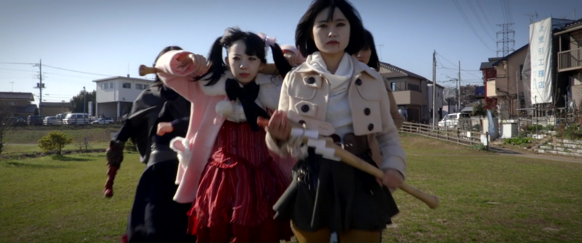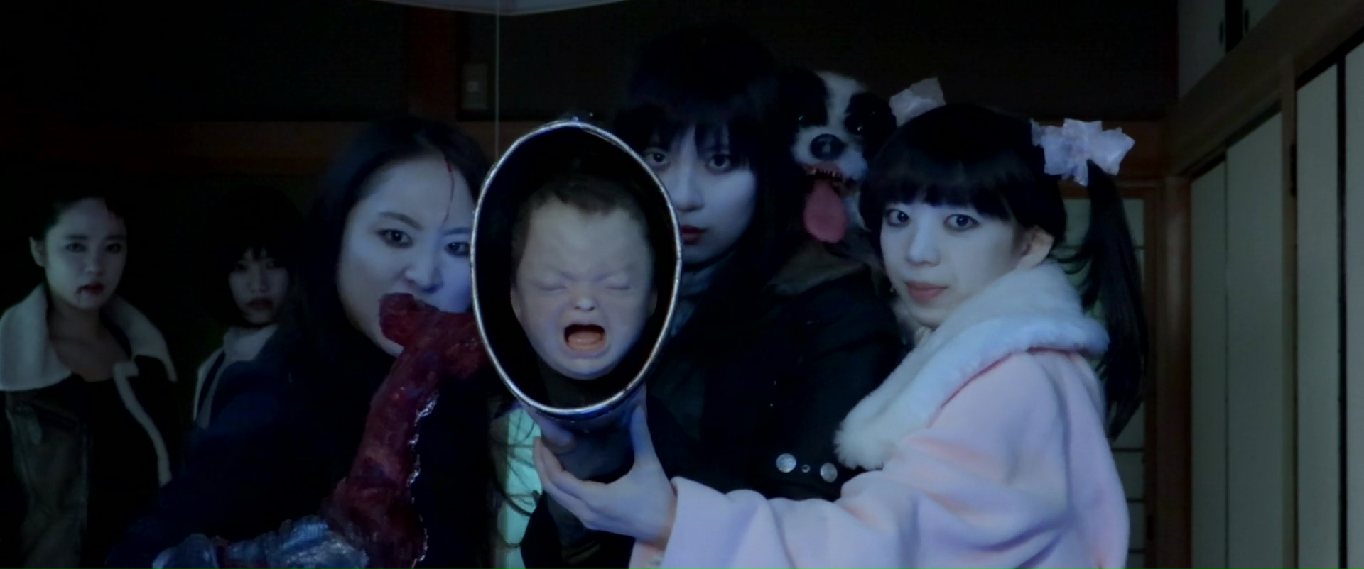 Monumentale erreur. Le premier gros souci de Ghost Squad, outre le fait que l’on connaît la formule un peu trop bien maintenant, c’est clairement son ton. C’est stupide, léger, peu crédible, ça en fait des tonnes pour être drôle sans jamais vraiment l’être, puis tout à coup, ça nous met une idée débile à l’écran, comme un marteau fait de chair (hommage à Cronenberg ?) qui remplace une main, ou alors un chien fantôme dont un personnage se sert comme d’une marionnette, et non, au moment où une vengeance va s’accomplir, Iguchi nous place des flashbacks, plus sérieux, qui se veulent plus durs, comme pour nous faire éprouver quelque chose pour les personnages. Et ça ne marche absolument jamais. Le ton du métrage ne le permet pas, l’incompétence d’Iguchi non plus d’ailleurs, tout comme le jeu des actrices qui en font des tonnes quasi tout le temps. Difficile oui de se sentir concerné, encore plus quand on se rend compte que ces flashbacks, finalement assez ratés et inutiles, cassent le rythme volontairement, et ne viennent alors permettre au métrage que d’atteindre les 1h46. Et chez Iguchi, c’est souvent long 1h46. Ghost Squad a le classique syndrome du réalisateur, ça aurait pu durer une heure. Une heure, ça aurait fait passer la pilule. Sur quasi deux heures, c’est juste indigeste, et ce malgré l’ajout de quelques idées plus ou moins amusantes sur la fin. Mais encore faut-il y être réceptif, et ne pas en avoir déjà marre du métrage.