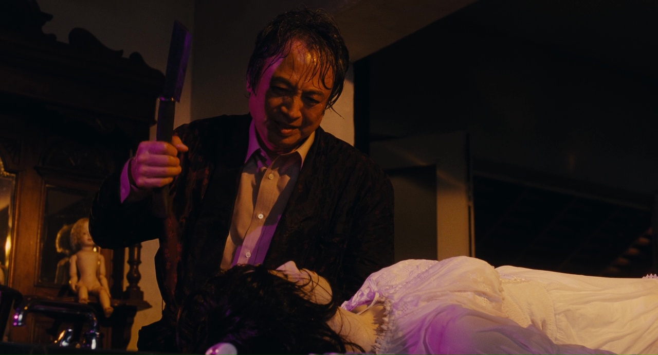 Mais cela ne va aucunement changer les codes du genre, puisque Ghost Theater respecte le cahier de charge du genre à la lettre près. Nakata ne prend donc pas de risque, et aidé par un budget qui semble confortable à l’image (contrairement à son premier métrage), se fait plaisir en soignant l’emballage. Techniquement, c’est propre. La photographie est jolie, les mouvements de caméra agréable à l’œil, le cadre est soigné, tout comme les décors et les costumes. On pourra d’ailleurs noter qu’à l’image de The Complex, le réalisateur n’hésite pas à utiliser des couleurs vives lors de certaines scènes, notamment pour les meurtres et les diverses apparitions, ce qui donne un aspect rappelant fortement une certaine période du cinéma Italien. Si son métrage est techniquement soigné, on pourrait presque en dire autant de son scénario. S’il manque clairement de surprises, n’invente rien et se fait même extrêmement prévisible, il ne s’étire pas inutilement, ne s’égare pas dans des moments superflus. Oui, c’est bien écrit, mais dans le fond, n’a-t-on pas déjà vu cette histoire ? Mais si, vous savez, avec une malédiction, des meurtres dans une équipe d’artistes, des apparitions derrière les personnages, des flics pas très doués, et une héroïne qui va devoir rendre visite à quelqu’un pour apprendre le fin mot de l’histoire, le début de la malédiction et tout ça ? Oui, Ghost Theater ne fait jamais dans l’originalité. Il reprend bien une formule établie, et ne s’en éloigne jamais.