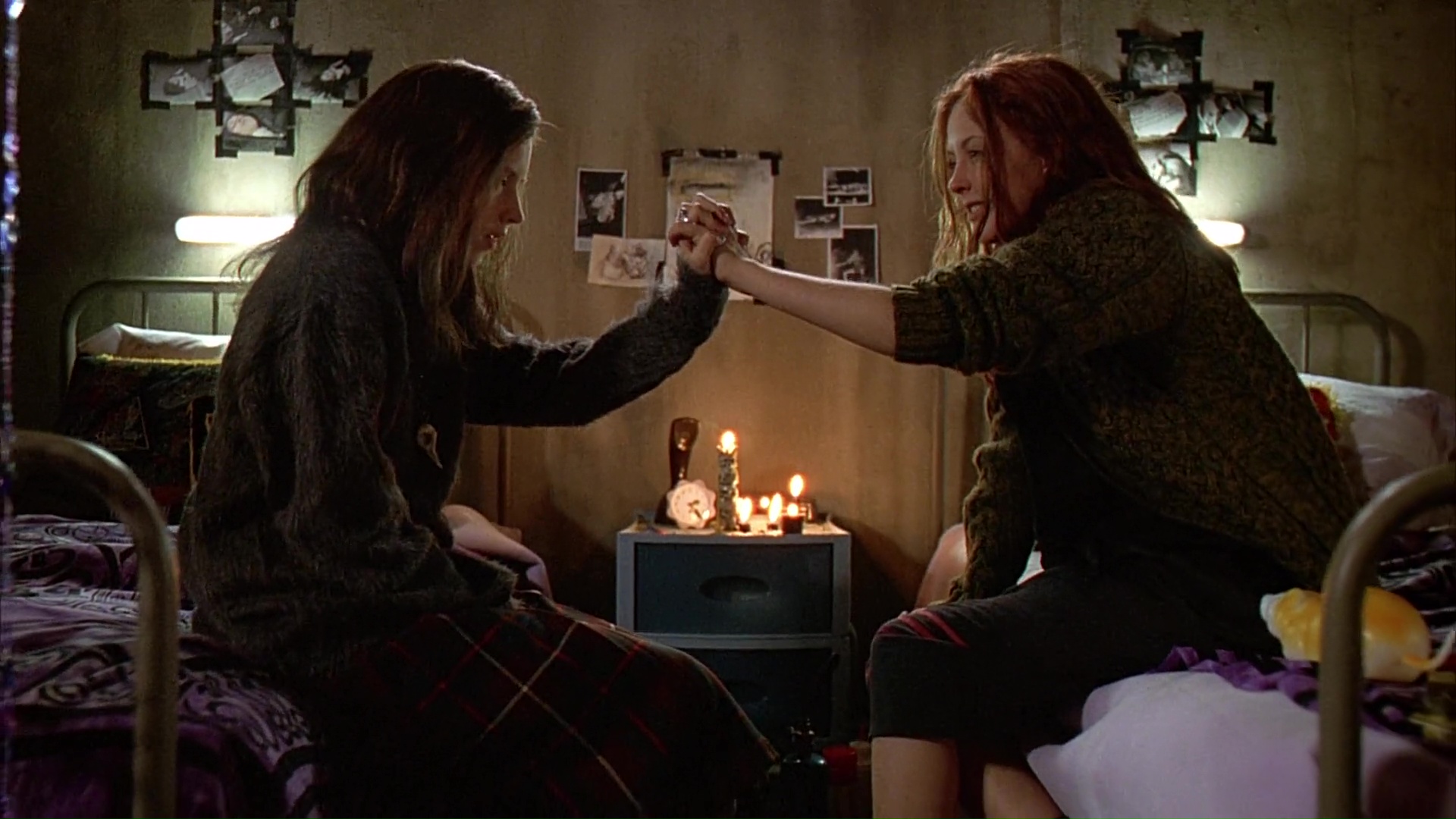 Et c’est là que le scénario s’avère très astucieux, en mettant en parallèle le mythe du loup garou, et celui du passage de l’adolescence à l’âge adulte. Procédé astucieux, autant dans le fond que dans la forme, qui aurait pu être cliché et bateau, mais avec le bon traitement, passe à merveille. Le rapprochement entre les deux fonctionne très bien, et ainsi, le début des transformations de Ginger ressemblera à un passage normal du processus de l’adolescence, commun à toutes. Perte de sang signifiant le début des règles, comportement changeant, de plus en plus violent envers les parents, l’appétit du sexe, ou encore la croissance des poils. Autant de choses naturelles qui seront mises en valeur, et comparées à ceux du loup garou. Le comportement violent de Ginger et son envie de découvrir plus de la vie, son envie de sexe, se retrouveront finalement être un stade de sa transformation, où les émotions primaires de l’homme (le sexe) se retrouveront vite remplacées par des émotions encore plus primaires, celle de l’animal, tel un appétit féroce. Ginger refusera au départ l’évidence que sa sœur, Brigitte, lui met devant les yeux, et finira par accepter l’inévitable en voyant ses méfaits, après avoir satisfait son besoin de sang, et aperçue des transformations physiques plus étranges que la normale. Ensembles, après de nombreuses disputes du à son comportement, elles chercheront un remède, et c’est là qu’interviendra le personnage de Sam, qui, avec Brigitte, va tenter de guérir sa sœur. Mais rapidement, tout ce qui fait parti du folklore, ce que les films nous ont toujours apprit sur les loups-garous, s’avère ne pas fonctionner. Ginger comprendra bien assez tôt que ce qui lui arrive ne peut être arrêté, et acceptera donc son destin. Le traitement des divers personnages est ainsi extrêmement bien réussi, et malgré son faible budget, la réalisation du film suit le propos, les cadrages du plus bel effet, et la photographie très réussie.