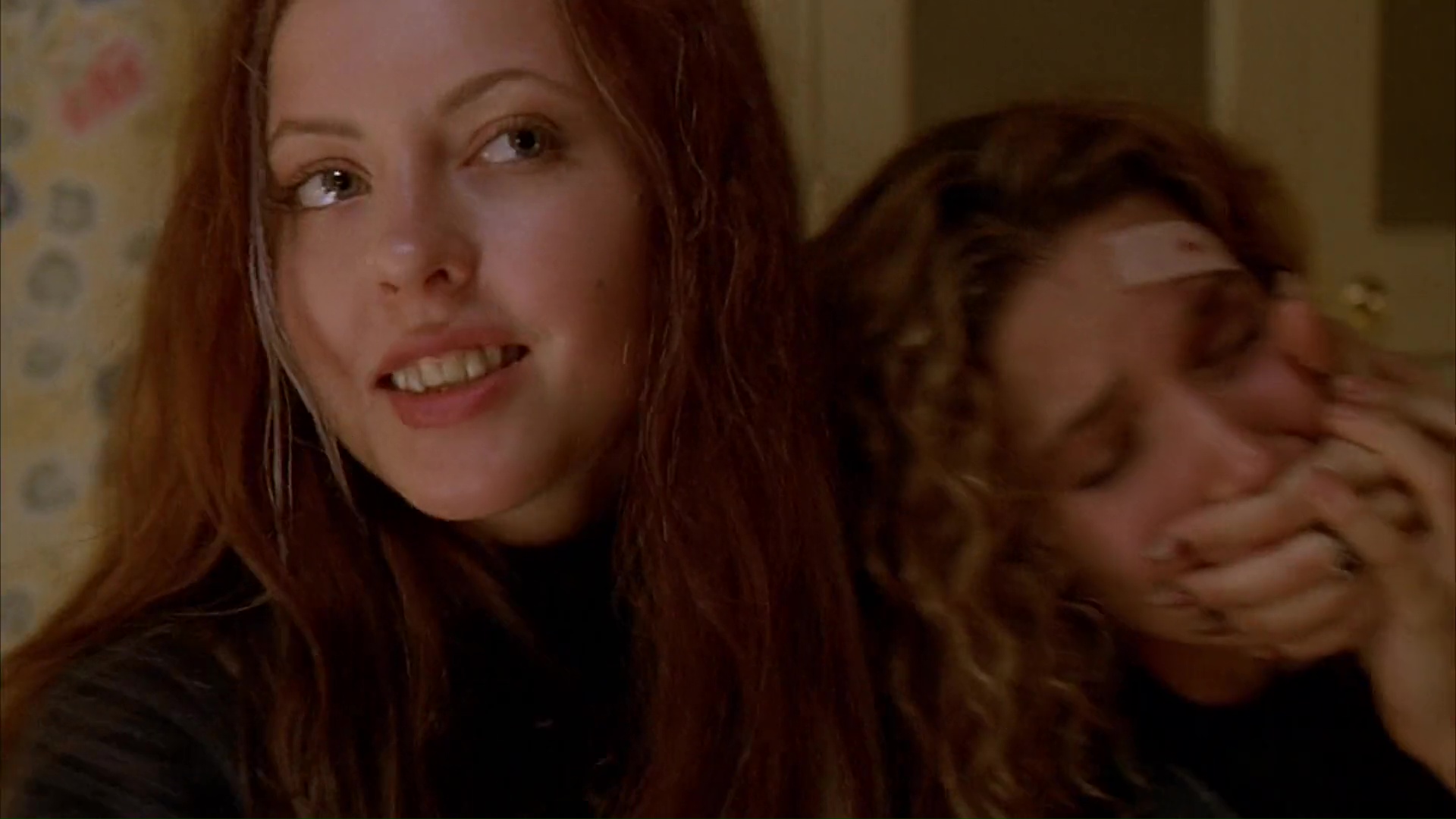 Le film nous propose donc de suivre les aventures de deux sœurs, Brigitte et Ginger. Deux sœurs totalement différentes des personnes de leur âge, ne voulant absolument pas ressembler aux autres, avec un goût prononcé pour ce qui est de choquer leurs camarades de classes. Pour un devoir de classe sur leur ville, elles feront un diaporama de photos les représentant, mortes, de toutes les manières possibles et imaginables… Poison, clôtures de maison, tondeuses à gazon… Le film prend donc le parti de nous montrer des jeunes femmes en marge de ce que la société voudrait qu’elles deviennent. Elles passent leur temps à critiquer les autres, et n’attachent aucune importance à leur famille, à leur apparence, et à l’image qu’elles renvoient aux autres. Leur mère s’inquiète en permanence pour elle, alors que le père semble totalement absent, se disant qu’elles sont jeunes, que ce n’est qu’un passage obligé de l’adolescence, une rébellion, celle que nous traversons tous. Toute cette famille est interprétée à la perfection, notamment les deux sœurs. Les choix de Katharine Isabelle, magnifique et investie, découverte par tous avec ce film (avant la carrière qu’on lui connait), et Emily Perkins, dont le personnage prendra de l’ampleur au fur et à mesure pour tenir tête à sa soeur et à ce qu’elle devient, sert à merveille le film. Toutes les deux sont très convaincantes dans leurs scènes, faisant passer avec une aisance incroyable les émotions des moments clés du film, et les questionnements de l’adolescence, et la complicité entre les deux est totalement plausible. Mais pour elles, tout va basculer une nuit, lorsqu’elles se feront attaquer par un loup garou, et que Ginger se fera mordre. Ses plaies vont rapidement se fermer, et son corps va commencer à changer.
