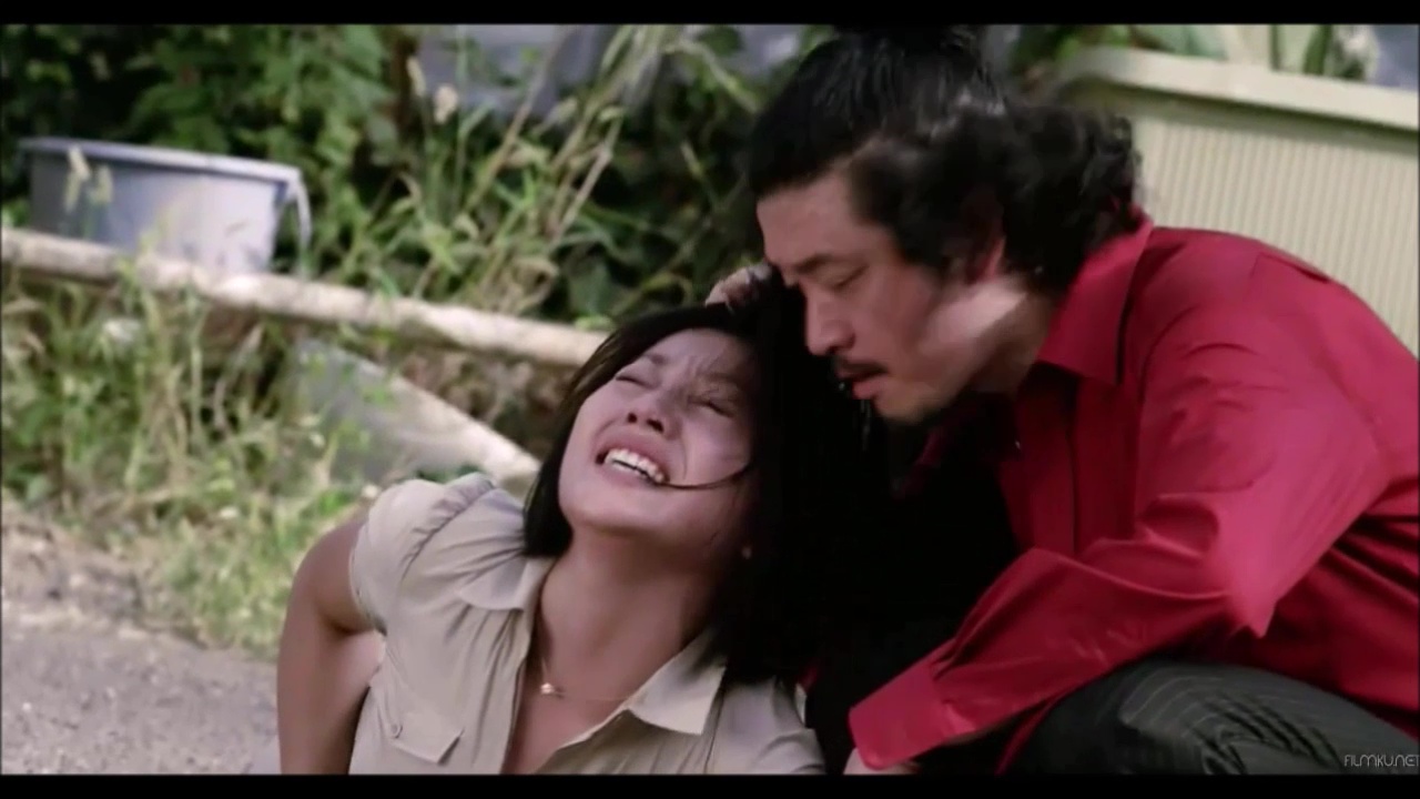 Il y a certains films, il n’y a bien qu’au Japon que cela est possible. J’aurais bien dis Hong Kong également, mais il faut avouer que le cinéma HK s’est bien calmé depuis la rétrocession de 1997. Mais je vais éviter d’aller un peu trop dans le débat politique de peur que la Chine ne bannisse mon blog. Girl’s Blood, aussi connus sous les titres de Aka X Pinku, ou Red X Pink, c’est un mélange entre deux genres que tout oppose. Si bien qu’il existe deux versions du métrage. Une version tout public, sans doute a même d’être diffusée à la télévision Japonaise, durant 1h58. Et une autre, durant 2h08, la version Director’s Cut, qui laisse exploser les deux genres en question à l’écran. Girl’s Blood, c’est du cinéma d’action, certes à petit budget, mais bourré de bonnes intentions, et qui, on le sent clairement, a eu droit à un chorégraphe motivé, et à un entrainement certes sans doute rapide mais néanmoins visible pour les actrices principales, pour rendre les combats à l’écran violents. Alors oui, par moment, on assistera bien à un montage un peu plus cut en fonction des combats, quelques coups sont un peu hésitants, mais à d’autres, on a des prises franchement très sympathiques, des coups hyper violents et de très bons mouvements de jambes. Et ça, je ne m’y attendais pas. Mais Girl’s Blood, c’est aussi un film avec des romances, entre femmes, et avec des scènes érotiques. Mais pas la petite scène érotique gentille qu’on place là pour gentiment amener le public masculin dans la salle de cinéma. Non, la scène érotique longue, travaillée visuellement (oui ce n’est pas bâclé, loin de là), avec nudité frontale intégrale svp. Et ça aussi, venant d’un film avec quelques actrices plus ou moins connues, et avec la Kadokawa et Pony Canyon qui produit derrière, ça surprend.