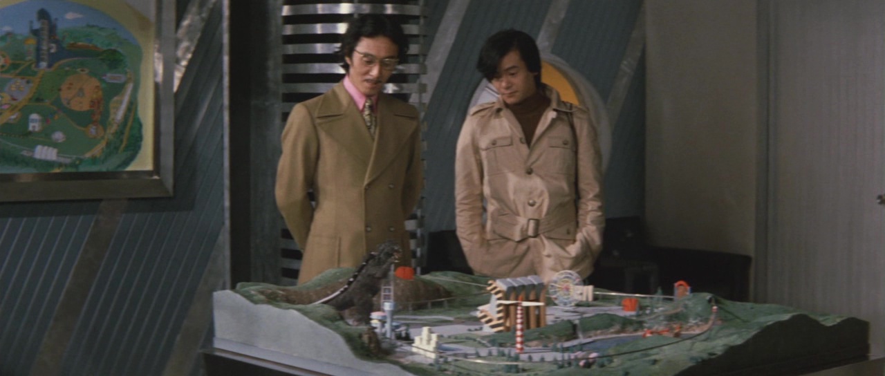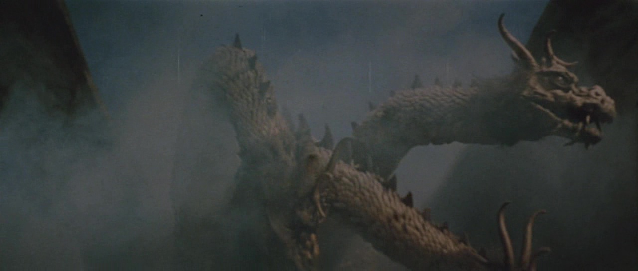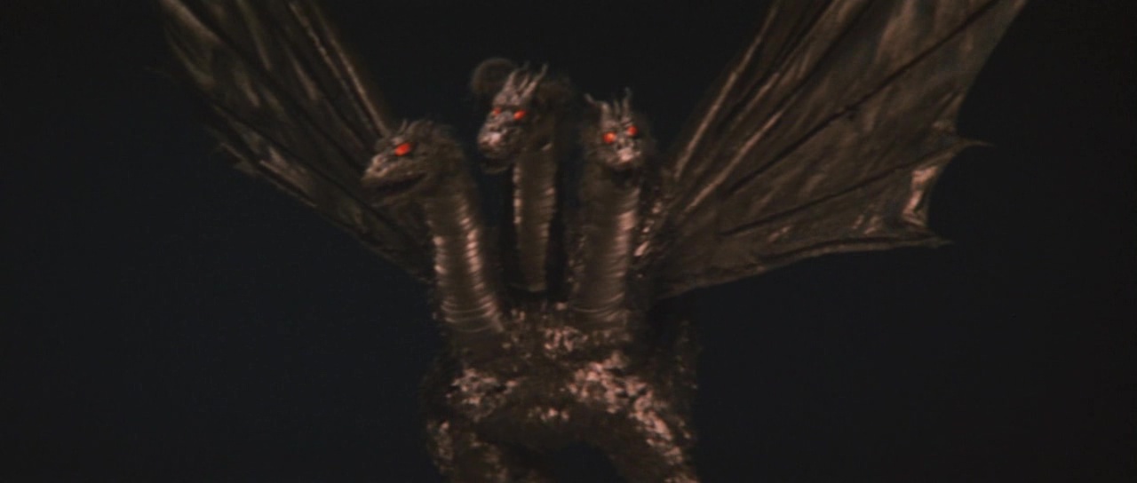 En 1971, la Toho avait fait appel à un nouveau réalisateur, un débutant, pour donner suite aux aventures de Godzilla et donner un second souffle à la saga. La mission était accomplie haut la main, entre son message écolo, la noirceur de son propos, le psychédélisme de son visuel. Mais la Toho fut très mécontente du résultat, et Godzilla contre Hedora 2 fut annulé, et le réalisateur chassé loin de la saga. Oui, ça se passe comme ça. Du coup, la Toho ne perd pas de temps pour lancer la production d’un nouvel opus, et voilà qu’ils vont nous rechercher Fukuda Jun pour la mise en scène, déjà responsable de Ebirah en 1966 et surtout du Fils de Godzilla en 1967. Oui sa participation à la saga n’aura pas été glorieuse, entre l’invention de Kaijus ratés (Ebirah) et un des opus les plus enfantins de la saga, mais tant que ça marche, la Toho ne se pose pas de questions, surtout que c’est l’assurance d’avoir là un métrage visant un plus large public que le précédent. Du coup, retour à un ton très léger, peu de risques, retour de Kaijus appréciés et bien connus (Anguirus, King Ghidorah), création d’un Kaiju peu inspiré mais qui pourtant sera un des préférés des fans avec Gigan, et une histoire peu inspirée et surtout peu originale. Oui, après Hedora, pas parfait mais qui prenait des risques, la saga régresse. Il suffit de jeter un œil à l’histoire pour s’en rendre compte. Un parc pour enfants, des envahisseurs très méchants qui veulent anéantir la Terre (ouais encore), Godzilla protecteur de la Terre. On commence à connaître la formule, même si celle-ci est épuisée. Car oui, les envahisseurs vont encore une fois contrôler les Kaijus pour s’en sortir, et vont encore envoyer King Ghidorah.