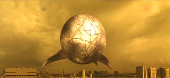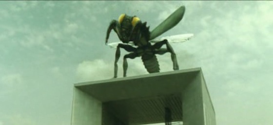 Heureusement, dans la seconde heure, Godzilla Final Wars arrive par moment à nous offrir ce que l’on attendait de lui, même si encore on se sent parfois trompé. Oui le film nous propose une réunion de monstres impressionnante, puisque l’on aura Gigan, King Seesar, Anguirus, Rodan, Mothra, King Ghidorah et tellement d’autres. Mais d’un autre côté, 90% des monstres ne semblent être là que pour le fan service et ils disparaissent du métrage aussi rapidement qu’ils sont arrivés pour laisser de nouveau la place à ce qui intéresse Kitamura : de l’action, des aliens, du cuir, tout ça. Il ira même nous faire des batailles en CGI assez immondes venant nous rappeler Independence Day, il fallait oser. On ne sait pas vraiment comment prendre ce film anniversaire, puisqu’il a en mains toutes les cartes pour plaire, mais semble ne pas savoir comment les utiliser. Quelques combats sont funs, revoir Mothra fait toujours plaisir, la musique signée Keith Emerson (Inferno) et Morino Nobuhiko (Versus et la plupart des films de Kitamura) est de très bonne facture et parvient à dynamiser quelques séquences molles (oh exploit). Mais Kitamura contrebalance ça par des combats vîtes ellipses, par son style habituel, par une première heure archi loooooooooongue, par le fils de Godzilla. Et face au sérieux et surtout à la réussite des trois opus précédents, on ne peut s’empêcher de penser que Final Wars est le pire Godzilla depuis Godzilla vs SpaceGodzilla, datant de 1994 tout de même… Ou peut-être Godzilla vs Megaguirus en 2001, j’hésite en fait.