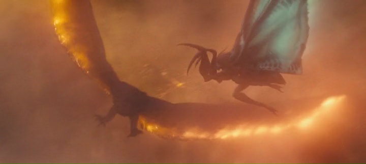 Car si Godzilla 2 fait grandement plaisir, et m’aura apporté quelques frissons, pour son visuel, ses monstres et ses combats grandioses, il faut également avouer que niveau personnages humains, ce n’est pas toujours la joie. C’était déjà le cas dans le précédent, qui voulait à tout prix s’axer sur les humains, qui pourtant ne servent à rien dans des combats à une telle échelle. Pratique pour le drame humain par contre, mais ça ne fonctionnait pas vraiment. Même cas de figure dans cette suite, avec la mise en avant de la famille Russell, brisée depuis les événements du précédent film. Mark s’est retiré loin de tout, Emma travaille pour Monarch, la société qui surveille les monstres, délaissant tous les deux leur fille Madison. On aura donc notre lot de famille déchirée, se cherchant, de rédemption, de sacrifices, et même de décisions stupides ou maladroites. Ce qui est dommage vu le solide casting (Kyle Chandler et Vera Farmiga jouent les parents). Mais à côté, pas forcément mieux, notamment avec l’humain méchant pas du tout gentil, joué par ce bon vieux Charles Dance, mais qui au final, fait plus de la figuration qu’autre chose, autant par son temps de présence à l’écran que par ses actes ne changeant pas grand-chose, le scénario ayant décidé que ce seraient la famille au centre de tout, et c’est tout. Niveau humain, ce n’est pas encore ça donc, même si face à la générosité du reste, on peut dire qu’il y a du mieux comparé au premier opus. Et donc, à côté, il y a ce qu’on était venu chercher dans un tel blockbuster. De la destruction de tous les côtés, du Godzilla en veux tu en voilà, du Mothra, du Rodan, du King Ghidorah, d’autres monstres peu intéressants bien en arrière plan, des plans iconiques, des idées (stupides parfois, mais belles à l’écran). Limite par moment, on se dit que Dougherty en fait un peu trop.