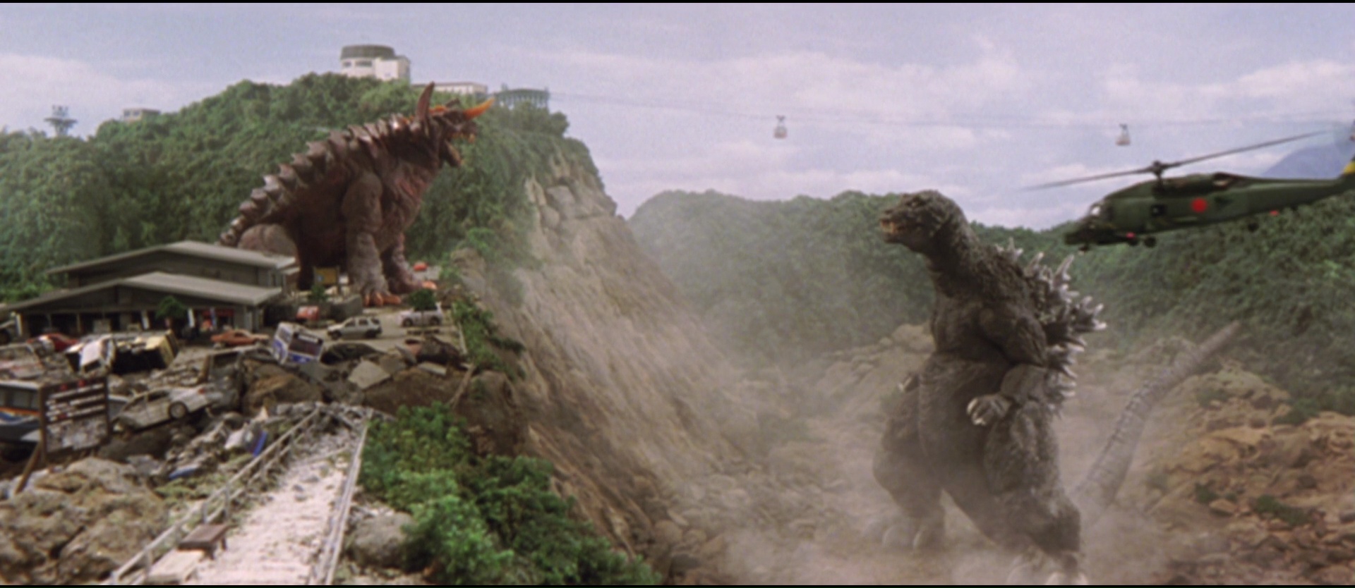 Parlons à présent de la troisième et indéniable, et surtout, logique, qualité du film. Les combats entre les monstres. Ceux-ci prennent une bonne partie du film à partir de la moitié de celui-ci. Que ce soit tous ensembles, ou un par un, un soin particulier à été donné aux maquettes qui seront détruites, ou tout simplement aux coups que se donnent les monstres. Et au niveau visuel, on ne pourra également que saluer l’équipe du film. En plus d’avoir fournit un remarquable travail sur les costumes et les maquettes, le mariage entre ces effets à l’ancienne et les effets numériques (incrustations diverses, rayons radioactifs) est vraiment superbe, on ne remarque pratiquement pas la différence. GMK constitue donc ce qui se fait de mieux dans la série Godzilla, a tout point de vue. Mais quelques défauts subsistent encore ci et là. On pourra noter notamment une partie du final, plongeant durant quelques secondes seulement, heureusement, dans ce que le film a évité avec brio tout le long du film : une touche de gnan gnantise. Excepté ce petit détail, rien à redire, le film est superbe à tout point de vue.