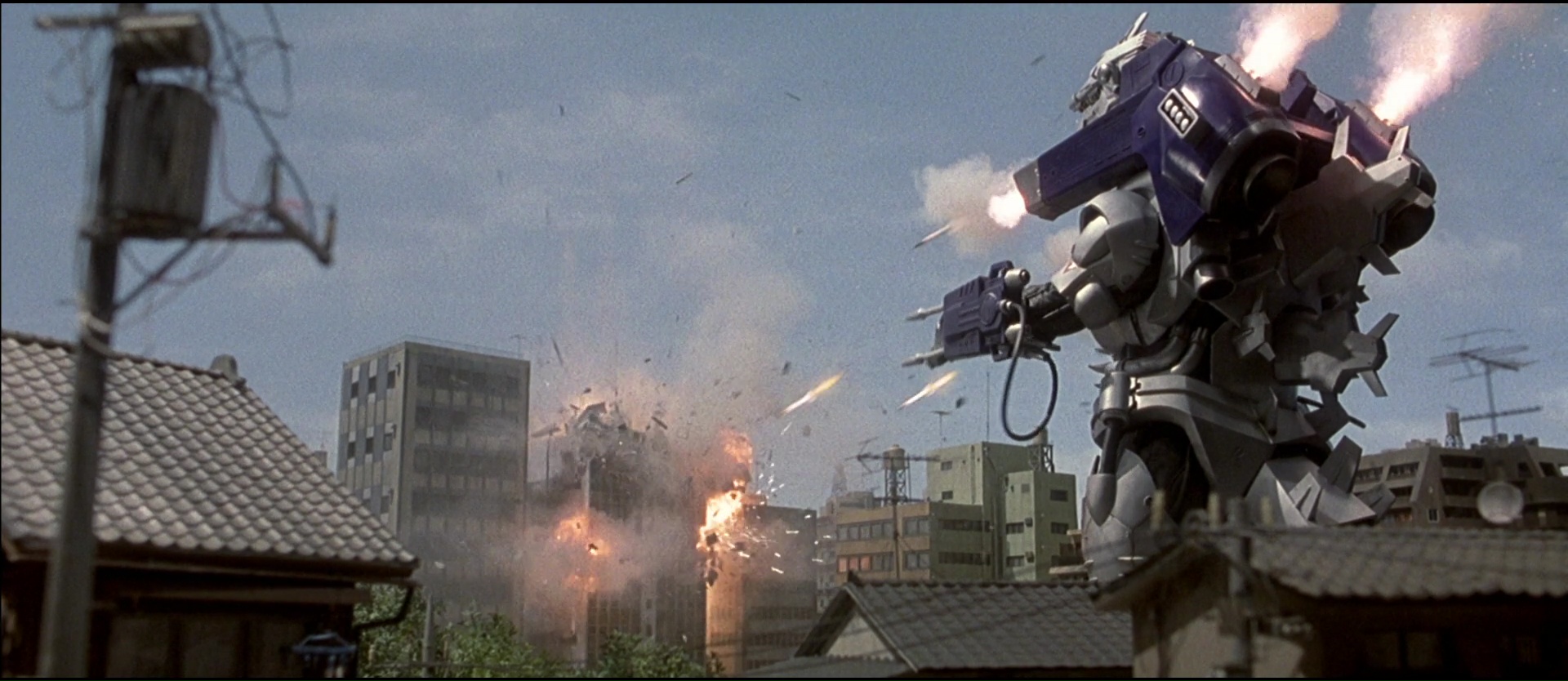 Dur de passer après GMK (Godzilla Mothra King Ghidorah, de 2001, l’opus réalisé par Kaneko Shûsuke, et tout simplement un des meilleurs Kaiju qui soit). Pour ce nouvel opus de la saga Godzilla, la Toho fait en plus un choix étrange, celui de reprendre Tezuka Masaaki à la mise en scène, qui avait signé en 2000 Godzilla VS Megaguirus, un opus que je n’avais personnellement pas aimé. Et surtout, après le grand succès du film précédent, il est étrange de voir la saga repartir encore de zéro, comme pour les trois opus précédents. C’est-à-dire encore une fois que le film fait suite au Godzilla original de 1954, comme tout le reste n’existait pas. Par contre, on comprend tout de suite mieux l’envie de la Toho de remettre sur le devant de la scène MechaGodzilla, puisque l’on ne l’avait plus vu depuis 1992 et Godzilla VS MechaGodzilla 2. Autre curiosité par contre, le film a du trouver un certain succès à sa sortie, puisque l’année suivante, le nouveau Godzilla, Tokyo SOS, était une suite directe du film qui nous intéresse aujourd’hui. Et ça tombe bien, car il est très bon ce Godzilla X MechaGodzilla. Reprenant la formule classique du Kaiju contre Mecha, le film utilise les techniques des précédents films pour moderniser cette formule et nous offrir un spectacle visuel inédit. L’intrigue ? Le Godzilla de 1954 est bel et bien mort, mais face à l’arrivée d’un nouveau Godzilla, le gouvernement n’a pas d’autres choix que de se servir des os de la créature pour créer le squelette de Kiryu, un robot géant, armé de roquettes, d’un rayon maser et j’en passe, afin de terrasser une bonne fois pour toute Godzilla.