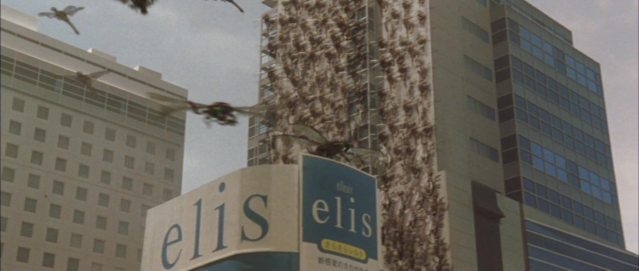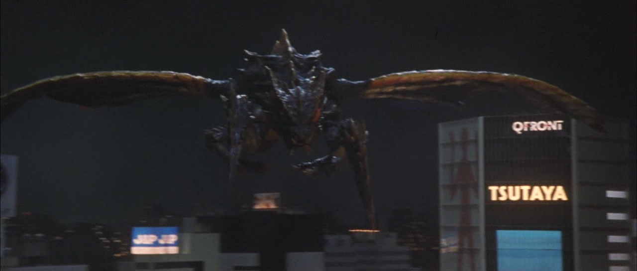 À sa sortie, Godzilla X Megaguirus m’avait déçu, et ne m’avait d’ailleurs pas plu. Je comprends aujourd’hui facilement les raisons de ma déception. En 1999, Godzilla 2000 (ou Godzilla Millenium) amenait notre lézard géant préféré dans le nouveau millénaire, et dans une nouvelle période, bien plus tôt que prévu puisque la Toho ne voulait plus faire de Godzilla avant 2004, sauf que Roland Emmerich est arrivé entre temps. Godzilla 2000 nous montrait, malgré pas mal de défauts, un Godzilla plus sombre, plus sérieux, et à partir de là, chaque opus de l’ère Millenium sera une suite au tout premier Godzilla de 1954, et poursuivra une voie plus sombre et sérieuse, à l’exception réellement de Godzilla Final Wars. Godzilla X Megaguirus débarque lui en 2000, un an après Godzilla 2000 donc, qui avait eu droit une sortie au cinéma en Amérique, chose assez rare pour le souligner. Assistant réalisateur depuis le début des années 80, et surtout assistant sur Rebirth of Mothra 2 et 3 en 1997 et 1998, Tezuka Masaaki réalise là son tout premier film. Il ne sera pas très présent en tant que réalisateur (seulement 5 longs métrages en tout), mais signera malgré tout trois opus de Godzilla, dont certains considérés parmi les meilleurs opus, rien que ça. Et après le sérieux et l’aspect plus sombre de Godzilla 2000, ce réalisateur va faire un choix plutôt surprenant pour ce Godzilla X Megaguirus, celui de mélanger modernité, noirceur et sérieux avec un côté qui nous ramène dans les années 70, et même 60, avec déjà un ennemi de Godzilla qui était apparu dans Rodan à l’époque, et avec un combat qui se permettra quelques prises de catch rappelant le pire de la saga, et un abus pas très artistique de ralentis et d’accélérés. De là ma déception fut grande. Et si ce choix déçoit toujours aujourd’hui et surtout me fait lever un sourcil, Godzilla X Megaguirus pourtant reste un bon film, et un bon Kaiju Eiga.