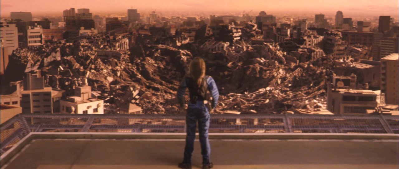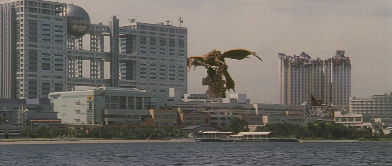 Et outre donc quelques choix discutables lors des combats, notamment des prises de catch comme dit plus haut, et une technique pas très ingénieuse par moment, et bien finalement ce nouvel opus s’avère être un très honnête divertissement. Pas le meilleur, les personnages humains n’étant pas des plus intéressants et certains choix malheureux nous ramènent donc aux mauvais opus de la saga, mais le film trouve un équilibre assez étrange entre modernité et nostalgie. Car même son aspect science fiction nous rappellera cette fameuse période de la saga où les aliens en avaient souvent après la Terre. Mais ce film le fait avec modernité donc. De nouveaux effets spéciaux, un Godzilla plus imposant, des scènes de destructions sublimes. Quelques scènes seront d’ailleurs marquantes, comme lorsque notre héroïne se retrouvera au milieu de l’océan et s’accrochera aux écailles de Godzilla pour lui poser un émetteur, ou encore ces plans nous montrant Osaka, inondé par les eaux, eaux où se trouvent les nombreux œufs ne demandant qu’à éclore. Visuellement, même si le métrage se déroule sans doute un peu trop de jour, ça a de la gueule, le mix entre anciennes techniques (costumes, maquettes) et nouvelles techniques (CGI) fonctionne bien (à quelques incrustations près). Au rang des déceptions, on pourra aussi noter une prise de risque quasiment peu présente, Godzilla n’étant pas vraiment méchant, pas vraiment gentil non plus. Il se contente de faire ce qu’il doit faire, et si des humains sont sur sa route, cela s’appelle des dommages collatéraux. Entre ça et le catch… Mais ne crachons pas dans la soupe, ce Godzilla X Megaguirus reste malgré tout fort sympathique, rythmé, a quelques scènes marquantes, et même s’il est bancal dans ses décisions et idées, il demeure un divertissement réussi, un peu à l’image de Godzilla 2000. La saga passera à la vitesse supérieure dès l’année suivante, et ce pour trois grands films de suite.
