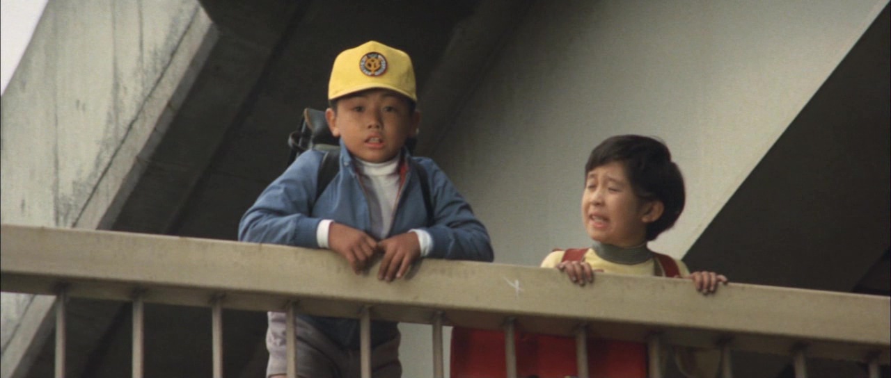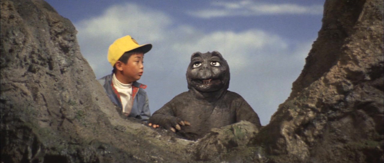 Retour au produit pour enfants donc ici, puisque le film ne va pas nous mentir, dés les premières secondes, le ton est donné, notre héros est Ichiro, un petit garçon. Martyrisé par ses camarades de classe, il s’évade dans ses rêves sur Monsterland (l’île qui retenait les monstres dans le précédent opus), où il va pouvoir faire copain copain avec Minilla pour aider Godzilla à vaincre Gabara, un monstre qui terrorise l’île, représentation mentale du méchant de la bande qui terrorise Ichiro dans la vraie vie. Oh et puis attendez ce n’est pas tout, puisque toute cette partie imaginaire avec les Kaijus pourra aider Ichiro puisqu’il va se faire kidnapper par deux braqueurs de banque… Rien qu’en lisant le synopsis, on comprend que rien ne va, que le film n’a pas été créé sur de bonnes bases. Dans un film Godzilla, on veut voir Godzilla, ainsi que d’autres Kaijus. Ici, les monstres ne sont que dans l’imaginaire d’un petit garçon. Existent-ils vraiment ? Peu importe nous dit le film, car nous suivons un petit enfant trop mignon et il va devoir grandir et se défendre tout seul le pauvre petit bout de chou ! Le propos est parmi les plus enfantins de la saga et va nous faire soupirer tout du long. Mais le propos n’est pas le seul responsable de la catastrophe du film, car il y a aussi la mise en image. On se doute rapidement que Honda n’a pas eu un budget bien confortable pour faire son film, ce qui va expliquer sa mise en scène plutôt plate, la très courte durée du film, et surtout la fainéantise du métrage en général. Car avec un tel concept, on se serait dit qu’au moins, le film allait balancer la sauce pour de bons combats lors des passages issus de l’imagination d’Ichiro.
