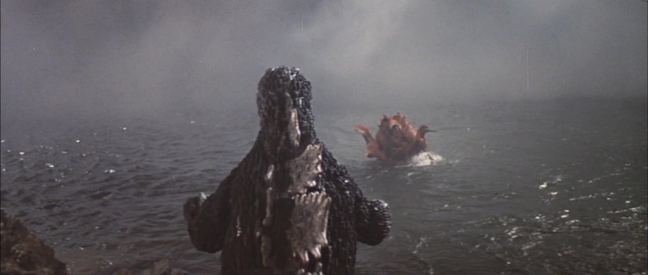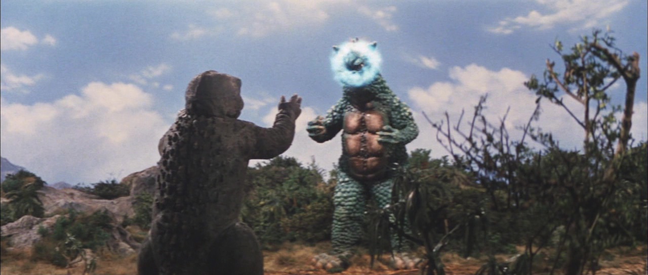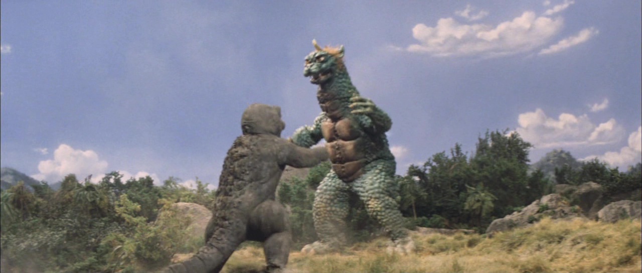 Et là c’est le drame, d’emblée. Le budget devait être si bas que la plupart des scènes mettant les Kaijus en image sont issus d’anciens films de la saga. Ainsi, on assiste dés le début à un combat entre Godzilla et des Kamacuras. Combat venant intégralement du Fils de Godzilla. Quelques instants après, Ichiro assistera avec Minilla à un combat sur la plage entre Godzilla et Ebirah. Combat venant intégralement du film Ebirah. Oui, le film reprend les anciens opus, et en plus de faire crier, il le fait mal. Ainsi, Ichiro et Minilla assistent de jour à un combat, qui se déroule sur la plage de nuit, avant que les monstres ne se battent sous l’eau, et lorsqu’ils reviennent à la surface, attention il fera jour. Et puis il y a le pire du pire. En plus d’être le pire Kaiju de tous les temps, Minilla parle ici… IL PARLE ! Ce putain de Casimir aux cris d’otarie mourante PARLE ! C’est après 5 minutes de blabla de sa part et du combat contre Ebirah, que nous avons donc déjà vus 3 films plus tôt que j’ai voulu arrêter la vision du film. Mais bon, 1h09 me suis-je dit. La suite ne s’améliore malheureusement pas, entre le ton enfantin et enfin un combat inédit entre Godzilla et Gabara, malheureusement peu impressionnant et filmé avec les pieds. Oui, le film est tristement mauvais, en plus de prendre les spectateurs pour des cons. Oui, j’ai lu que Tsuburaya Eiji, responsable des effets spéciaux habituellement, n’était pas disponible pour une raison X ou Y, ce qui explique la faiblesse du seul combat inédit, mais tout de même, ça reste une honte.