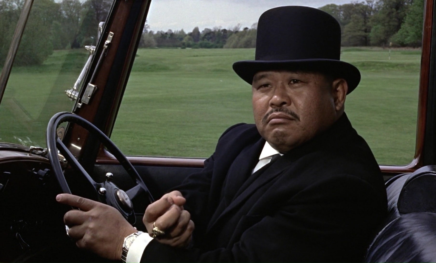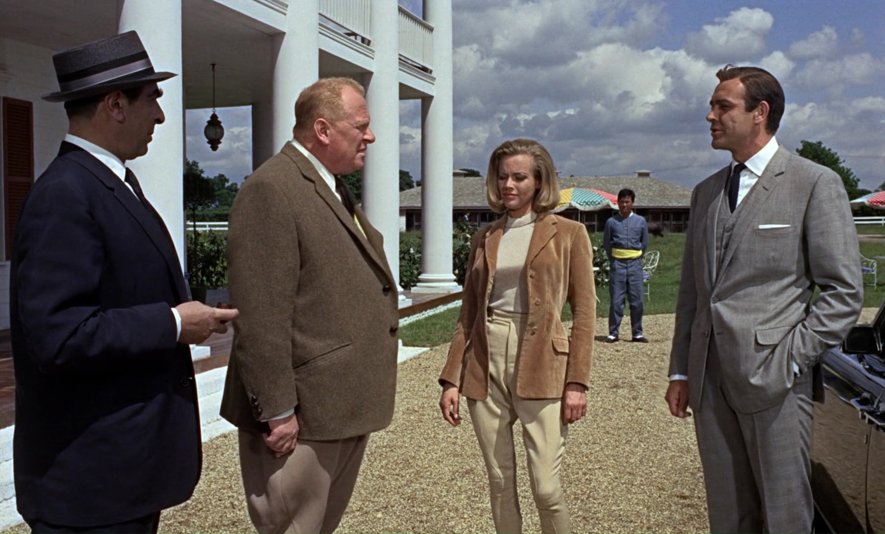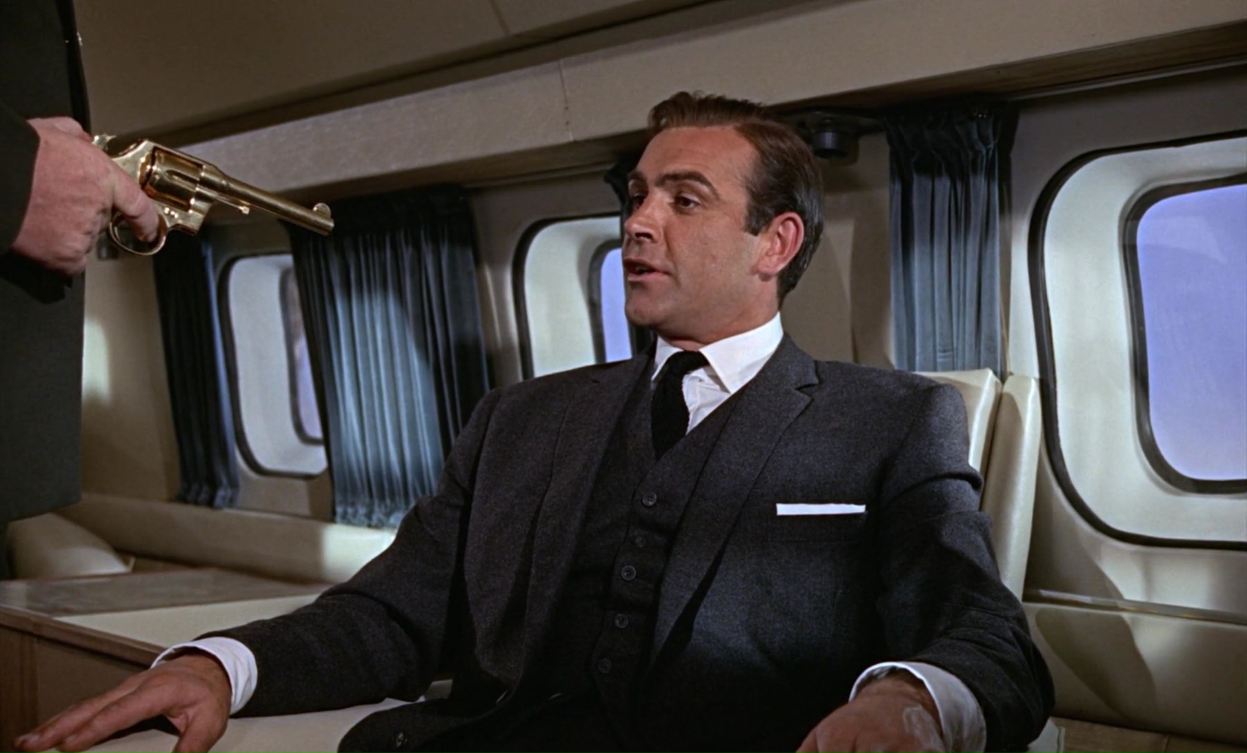 Il est le premier méchant que l’on voit clairement à l’écran pendant tout le film qui a la classe, a l’air intelligent, a un plan diabolique mais plutôt bien trouvé (détruire tout l’or de Fort Knox pour faire augmenter la valeur de son or à lui), et qui en plus à droit à des phrases cultes, dont une qui aura marqué apparemment les spectateurs depuis la sortie du métrage durant la fameuse scène du laser. Du coup, James Bond qui a la classe a face à lui un ennemi à sa hauteur, et ça change clairement la donne. Surtout que Goldfinger peut se venter d’avoir un homme de main qui aura aussi marqué les esprits avec Oddjob. Ah lui et son chapeau mortel… Par contre je serais moins enthousiaste en ce qui concerne la Bond Girl principale du titre, Pussy Galore, qui bien qu’ayant son utilité dans l’intrigue, n’a a mon sens absolument aucun développement un tant soit peu intéressant. Je lui préférais la Bond Girl du précédent opus, ou encore Tilly Masterson, bien que ne faisant que 5 ou 6 petites minutes à l’écran. Pour sa troisième mission, les scénaristes parviennent à améliorer en tout cas encore la saga à presque tous les niveaux, sans pour autant se répéter. J’aurais par exemple fortement apprécié le fait que James Bond soit au final prisonnier durant la moitié du métrage. En tout cas, à défaut de me rendre fan, si les aventures suivantes de l’agent secret sont du même niveau, je suis preneur.
