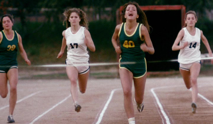 1981 est une excellente année pour le slasher, que ce soit les grosses productions, les suites, ou les films que personne n’attendait. Vendredi 13 sort son second opus tout comme Halloween, Jess Franco sort La Lune de Sang, on aura Don’t go in the Woods, Final Exam, Massacres dans le Train Fantôme de Tobe Hooper, Mortelle Saint Valentin, The Prowler et j’en passe. Graduation Day, produit pour une somme ridicule de 250 000 dollars obtenus grâce à la future diffusion dans les salles du film, et tourné en trois semaines, fait parti de ces métrages, sortant de nul part, mais plein de bonnes intentions. Un slasher tout ce qu’il y a de plus classique dans le fond, et reprenant une formule qui fonctionne, mais bénéficiant d’un minimum de sérieux dans sa mise en image et son montage pour plaire au public, tout en étant une des premières apparitions notables de Linnea Quigley, engagée en cours de production, alors qu’elle n’est pas encore connue. Comme pour ces rôles célèbre, elle n’hésitera pas à se dénuder, des années avant Douce Nuit Sanglante Nuit, Le Retour des Morts-Vivants ou encore… hmm hmm… Creepozoids et Pumpkinhead 2 ! Tout commence par un montage plutôt punchy sur des championnats sportifs. Occasion de retrouver Christopher George, alors connu pour ses rôles chez Fulci (Frayeurs) dans le rôle du coach. Le montage se fait plaisir, puis c’est le drame, Laura meurt alors qu’elle gagne la médaille. Terrible accident, qui déclenchera l’histoire à venir. À partir de là, un tueur décidera de tuer les uns après les autres les membres du club de sport.