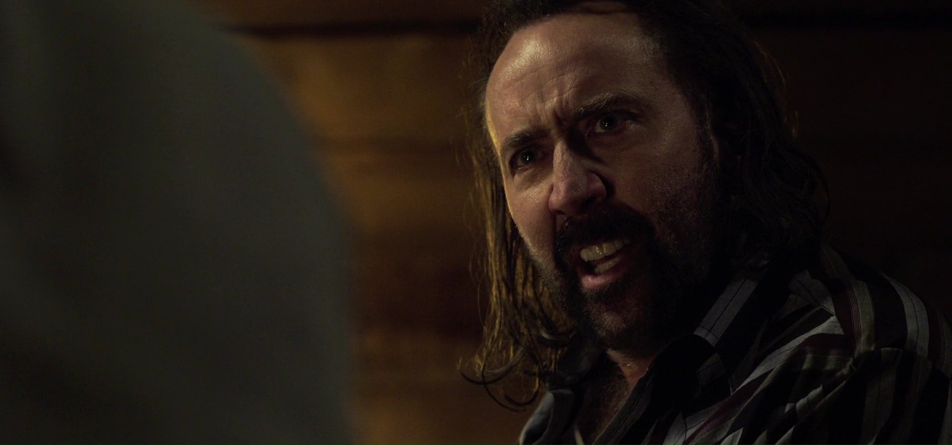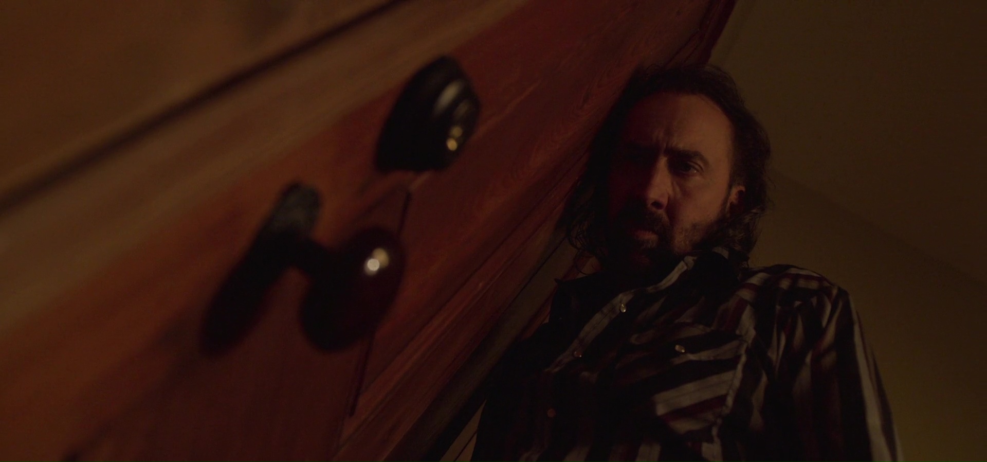 Quand l’argent (une belle somme d’ailleurs) et forcément, le meurtre s’invitent dans le récit, ça décolle, et ça fonctionne, le film ayant prit le temps de bien tout établir. La violence sera pourtant peu présente, du moins visuellement, mais cela la rend plus marquante, puisqu’elle débarque sans prévenir. Mais c’est aussi là que le métrage déraille totalement. Nicolas Cage, convaincant jusque là, reste convaincant, mais nous sort son jeu d’allumé habituel, rire à l’appui bien entendu, la violence devient plus fréquente, le rythme s’emballe, les mystères aussi, les révélations, les twists. Tout pour retenir l’attention du spectateur. Lorsque pour son dernier acte, le film qui était alors raconté en flashback rejoint son point de départ, là le métrage se montre clairement moins convaincant. Il faut dire qu’il sort alors la plupart du temps de son huis clos sombre, qu’il s’ouvre à de plus larges décors, et à des décors plus éclairés, tout en invitant alors des personnages jusque là peu importants à prendre place dans le déroulement du récit. Pourtant, Emily Marie Palmer joue bien, mais la sauce a du mal à prendre. Visuellement, ça se fait moins inspiré, narrativement moins resserré, et puis non, avoir décidé de couper les magnifiques cheveux de Nicolas Cage ainsi que sa barbe pour le final, ce n’était pas une bonne idée. Oui, ce sera ma manière de critiquer le final sans lâcher aucun spoil et avec une excuse bidon.