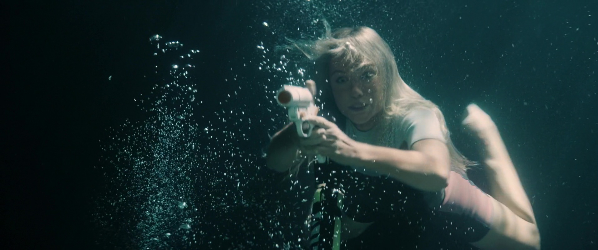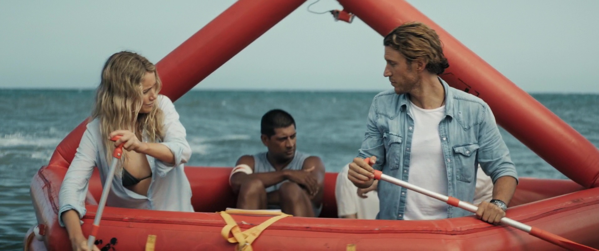 Ah oui désolé mais notre couple de héros qui saute à l’eau sans matériel pour se débarrasser des requins alentours, et arrivent à parler sous l’eau (même pas avec des sons étouffés par l’eau ou autre, on comprend parfaitement ce qu’ils disent), ça me fait rire. Et ça flingue aussi toute crédibilité vu qu’ils sont tous champions du monde en apnée, sauf quand le scénario ne le permet plus, pour nous mettre du rebondissement vous voyez ! Puis, il y a tout simplement les nombreuses conneries que l’on doit au personnage. Genre le mec cool qui tout à coup panique comme une fillette. Ou l’Asiatique qui s’énerve quand le side kick veut toucher sa copine (l’aider à mettre une tenue adaptée en fait), le jette à l’eau, il se fait bouffer, les gens sont tristes deux secondes. Trois minutes après, l’Asiatique tombe à l’eau, se fait bouffer, et là, c’est la fin du monde, tout le monde crie, pleure, bouh ouh ! Puis il y a ce requin, qui attaque un peu quand l’humeur n’est pas au beau fixe, puisqu’agissant sans vraie logique. Une personne à la mer, et donc, faisant des vagues et des mouvements pouvant être assimilé à un phoque ? Il attend bien le dernier moment pour débarquer et ainsi laisser à sa proie une chance. Par contre, rien ne se passe, aucun mouvement, tout est calme, et Pierre Henry (on va appeler le requin ainsi) en a marre d’attendre et décide de donner un coup d’aileron dans le canot pour foutre tout le monde à la mer. Je sais bien qu’il faut du rebondissement pour tenir 1h30, et donc forcément, briser un peu le réalisme, mais il y a des limites. Surtout quand dans la scène finale, on se retrouve encore avec un requin qui grogne sous l’eau bordel ! Ce film est-il une blague ? Je l’ignore, je ne pense pas, du moins pas au départ. Mais bon, au moins, la photographie est agréable à l’œil, et Katrina aussi, mais je l’ai déjà dit.