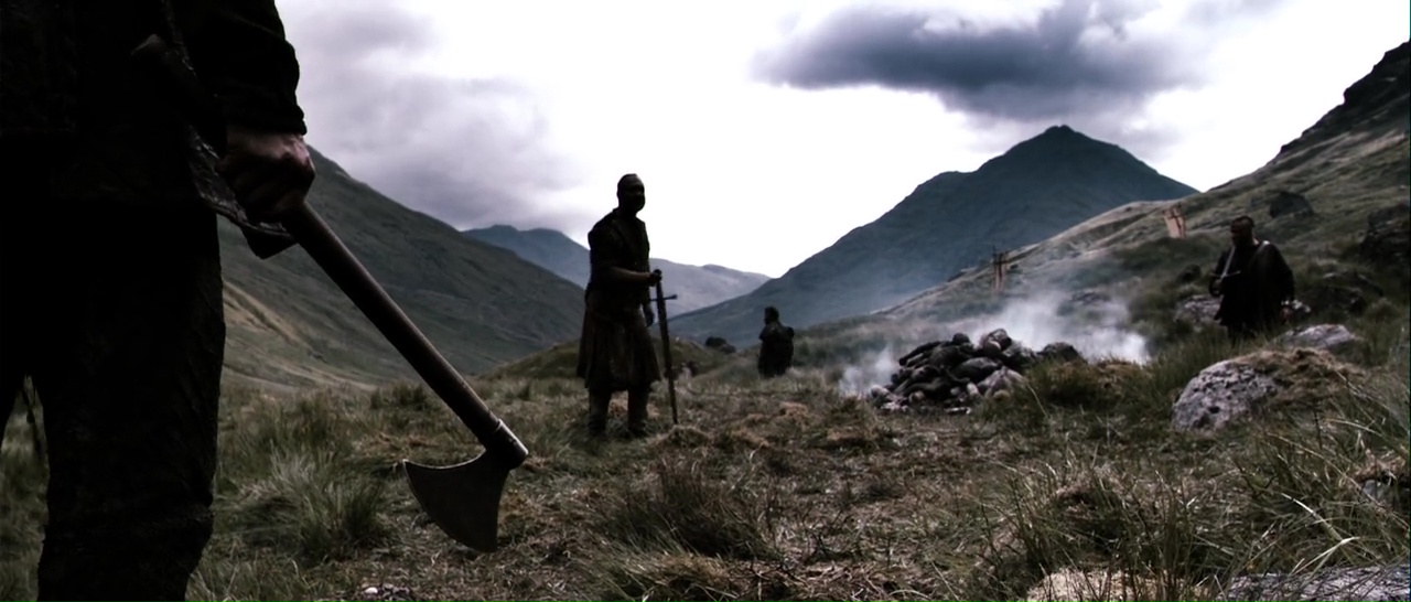 Aujourd’hui, j’ai eu envie de revenir sur Le Guerrier Silencieux, alias Valhalla Rising, un des grands films incompris de Nicolas Winding Refn, pourtant continuité logique de sa carrière, et surtout une continuité logique de Inside Job et Bronson. Un film que l’on peut rapprocher du cinéma de Kubrick en fouillant un peu. Inside Job livrait déjà en 2000, après deux films réalistes tournés caméra à l’épaule, un aperçu de là que Refn voulait aller, vers un cinéma plus silencieux, plus symbolique voir métaphysique parfois. Le film nous présentait des scènes qui semblaient fortement inspirées du cinéma de Kubrick. Puis vint Bronson, qui citait carrément Orange Mécanique, et surtout qui parvenait à être un film passionnant, en nous racontant l’histoire d’un mec pas franchement passionnant. Valhalla Rising poursuit cette exploration en poussant le bouchon bien plus loin, et divisera totalement les spectateurs à sa sortie. Car ceux qui attendaient un récit barbare au temps des vikings se sont plutôt retrouvés face à 2001 l’Odyssée de l’espace chez les vikings. Ce qui est très différent il faut l’avouer. Une bonne partie des spectateurs s’est donc sentie trahie, et a lâché prise face au film proposé par Refn, face à ces longs plans sur des sublimes décors, face à ce guerrier bel et bien silencieux (il est muet), et face à cette ambiance totalement surréaliste. Oui, si on prend Le Guerrier Silencieux sans chercher à comprendre la signification des images que le réalisateur nous offre, nous avons un film long, avec des personnages qui marchent, longtemps, ne parlent pas, meurent parfois de manière atroces, puis vont de nouveau marcher.