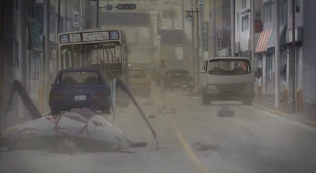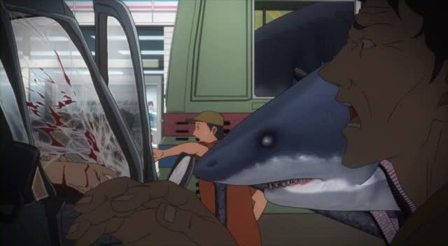 Si comme dit plus haut également, le graphisme se fait sérieux et même solide, l’animation aura quelques tares malheureusement, notamment lors de quelques plans 3D, qui ne sont pas tous réussis. Mais malgré ses détails, pour peu que l’on connaisse l’univers de Ito Junji ou que l’on apprécie les œuvres étranges et que l’on rentre dans l’ambiance, Gyo se suit d’une traite, sans temps mort, et se fait à l’image du manga parfois ambitieux. Ce qui commence dans une petite maison de campagne entre trois amies avec quelques attaques de poissons se transforme rapidement en apocalypse touchant la capitale, le pays, le monde entier, et à de quoi surprendre sur la longueur. Une bonne surprise inespérée bien qu’imparfaite.