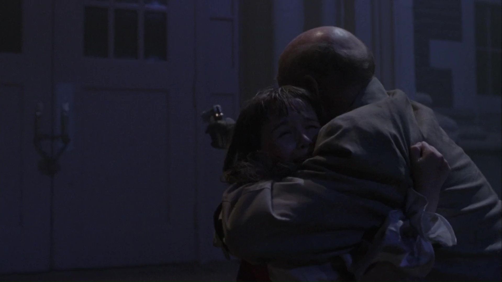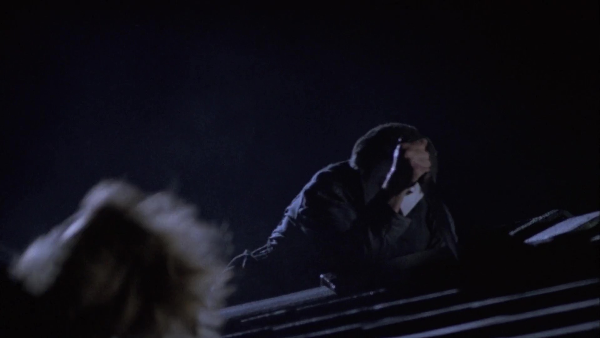 Autre élément amenant la saga dans une direction beaucoup plus banale du slasher, le rythme, et d’une certaine manière, le bodycount. Là où les premiers opus privilégiaient l’ambiance et ne montraient pas grand-chose (voir abordaient un rythme très lent pour le premier), ici, c’est l’opposé. Les meurtres sont plus nombreux, et s’ils ne sont pas gore, loin de là, ils se font plus violents (tête écrasée, fusil servant à transpercer des victimes), et le film mise beaucoup plus sur les poursuites entre le tueur et ses victimes que ce n’était le cas par le passé. Si Vendredi 13 est né grâce au succès d’Halloween, Halloween 4 entame une descente vers cet univers plus classique auquel la saga a donné naissance. Malgré tout, de très bons moments se dégagent de ce quatrième opus, comme la scène sur le toit de la maison, quelques reprises intéressantes du thème, l’interprétation toujours sans faille de Donald Pleasence, quelques poursuites bienvenues, et son final osé que le cinquième opus éclipsera rapidement dès l’année suivante. Dwight H. Little n’est certainement pas un grand metteur en scène, mais il amène son savoir faire à des projets de commande, et c’est déjà pas si mal. Pour preuve, la scène d’ouverture plutôt surprenante, assez glauque même. Un opus donc peu utile au final, mais plaisant.