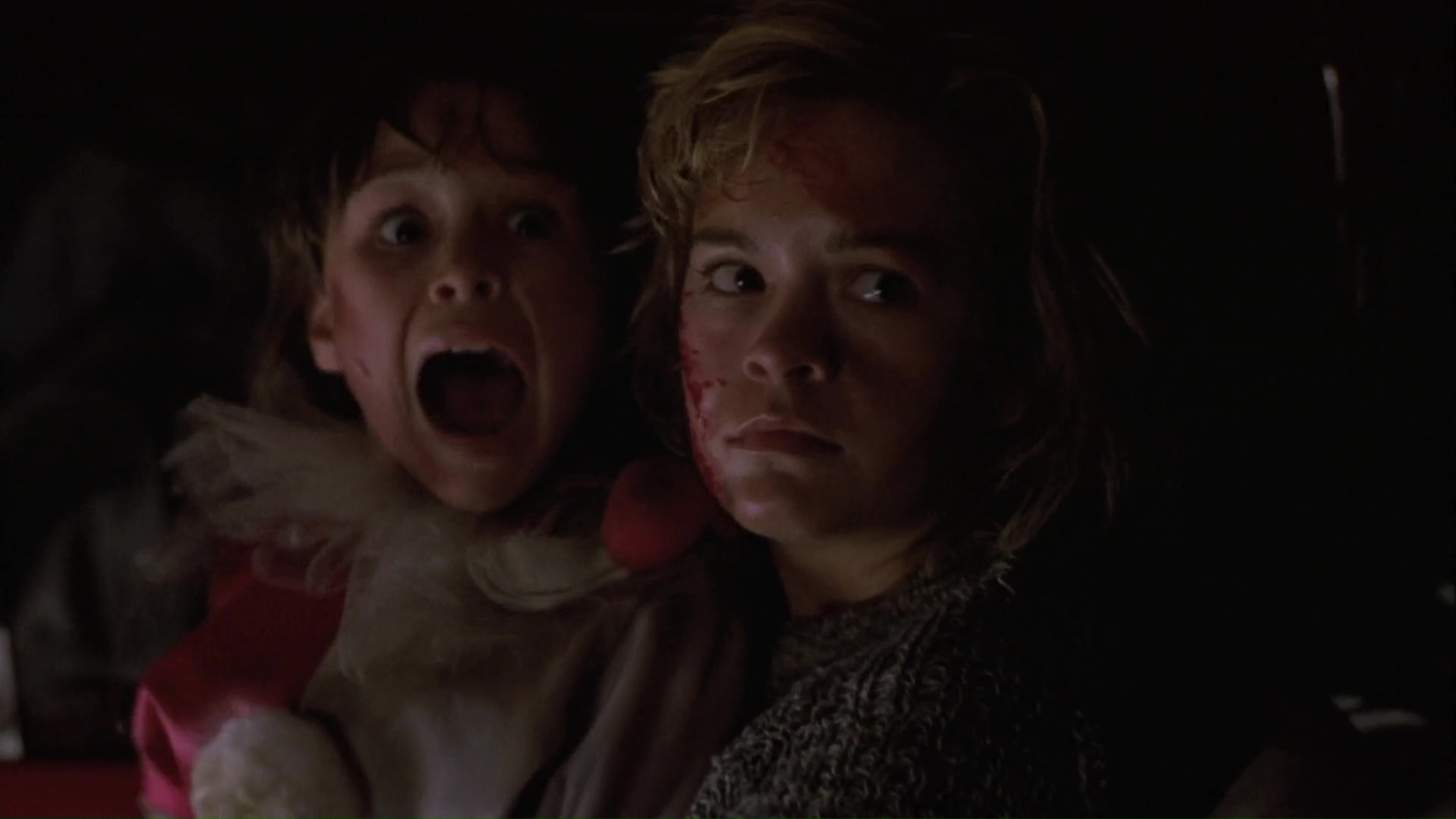 Halloween 4 donc, se déroule 10 ans après les événements d’Halloween 2. Michael Myers est toujours vivant et dans un hôpital, où il doit être transféré la veille d’Halloween (comme de par hasard), et il en profitera pour s’échapper (comme par hasard) afin de retourner à Haddonfield le soir d’Halloween pour finir ce qu’il a commencé (comme par…). Heureusement, le docteur Loomis est là et prêt à tout pour mettre un terme aux agissements du tueur (oui, bon non, je ne dis plus rien), qui veut tuer sa nièce, la jeune Jamie Lloyd (jouée par Danielle Harris, que l’on retrouvera dans la cinquième opus, mais également dans un rôle différent dans les remakes de Rob Zombie, ou encore dans Hatchet 2 et 3). Ce Halloween 4, on peut le dire, ne se casse pas trop la tête. Michael Myers va encore une fois tuer tout le monde pour pouvoir réussir son objectif, qui est d’éradiquer les derniers membres de sa famille. Léger certes, mais en comparaison de Jason dans Vendredi 13, il a au moins un but. Et au-delà de ce but, on a là un pur slasher typé années 80. Le tueur ne meurt jamais, arrive à être toujours au bon endroit au bon moment (ou au mauvais endroit au mauvais moment pour la victime potentielle), l’héroïne court et crie, les personnages secondaires sont souvent peu développés et meurent vite.