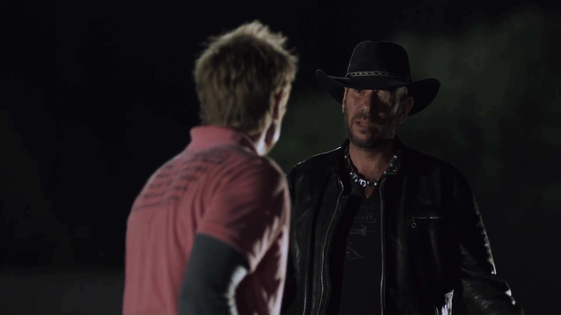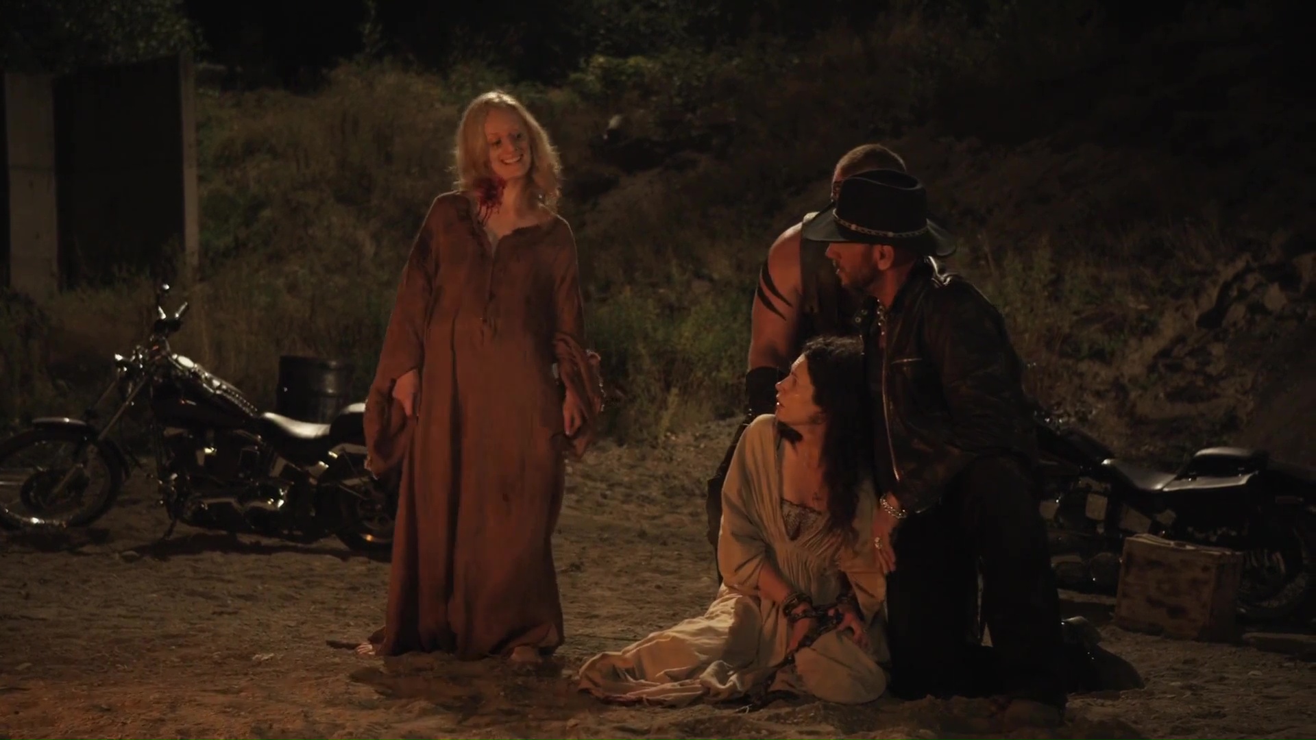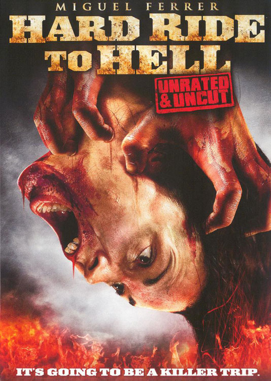 Si je vous dis, film de genre, réalisé par une femme, tourné au Canada, avec Miguel Ferrer en méchant et Katharine Isabelle en victime potentielle, vous accourez, comme moi non ? Si je vous dit qu’en plus il y a du sang, des sataniques, des bikers, des cannibales, encore mieux non ? Pourtant, Hard Ride to Hell est la preuve qu’il ne suffit pas de prendre quelques idées cool et un casting qui attire pour faire un bon film, car ce n’est ici assurément pas un bon film ! On s’en rend d’ailleurs compte très rapidement, dès la scène d’ouverture où deux mexicains entrent dans une ville déserte, et se font attaquer par une femme en état « zombifié ». Le père meurt, avant de confier une amulette magique à son fils, tandis que la méchante femme sera aussitôt tuée par Jefé, le chef d’un culte satanique joué par Miguel Ferrer. Dès le départ, ça sonne faux, on comprend que le film prend des idées un peu partout sans cohérences, que c’est un peu cliché, un peu ridicule, et que ça ne veut pas vraiment dire grand-chose. Ainsi, cinq jeunes sont au Texas pour passer du bon temps en camping. Why not. Bateau, cliché, why not. Le cahier de charge est déjà balancé à l’écran, avec le beau gosse, le célibataire, le noir qui devra mourir en premier, la fille un peu déprimée, et Katharine Isabelle nous offrant certains des meilleurs plans du film. Et le fait qu’on la découvre en petite culotte n’a rien à voir avec ça, non mais hey !