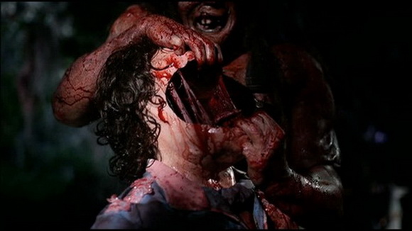 Et comme dans tout film d’horreur bien con qui se respecte, les morts vont être légions, nos gentils héros tombant comme des mouches avec des effets gores à l’ancienne (le numérique ça sert à rien) vraiment très réussis : membres coupés, têtes qui volent, rabotage de visage, mâchoire arrachée, les hectolitres de sang coulent à flot pour le plus grand plaisir des amateurs de gores que nous sommes. Notre boogeyman est un grand poète et aime à charcuter à tours de bras, en ayant un faible pour les brochettes humaines. Tout est too much, de la réaction des personnages (ils auraient pu avoir le tueur à plusieurs reprises) qu’au surjeu des acteurs et on sent bien tout le long du film ce second degré qui flotte et qui nous donne le sourire aux lèvres.