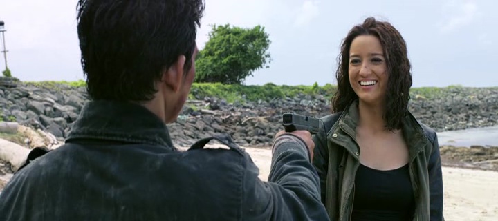 Quoi qu’il en soit, dés la scène d’ouverture, Headshot met en confiance avec l’évasion de Lee (Zack Lee) de prison. Évasion à grand renfort de fusillades, de corps transpercés dans tous les sens, le tout sous une direction artistique très plaisante et un score musical qui met dans le bain. Si bien que oui, on voudra pardonner au métrage sa fâcheuse manie lors des fusillades d’avoir recours à des giclées de sang numériques (heureusement relativement furtives), mais aussi des détonations parfois générées par informatique. Pas de quoi crier à la catastrophe dans tous les cas. La première heure prend des allures de remake plus violent de Jason Bourne donc. On fait connaissance avec les personnages, quelques scènes d’action s’invitent dans le récit pour nous faire comprendre les ennemis que notre héros devra affronter par la suite (dont Julie Estelle donc, la fameuse fille aux marteaux de The Raid 2). L’ensemble se fait très plaisant à suivre, malgré son intrigue un bien convenues et quelques scènes moins inspirées, sans doute pour adoucir le ton notamment dans la relation entre Ismaël notre héros et la docteur Ailin (jouée par Chelsea Islan). Par moment, la niaiserie n’est pas loin.