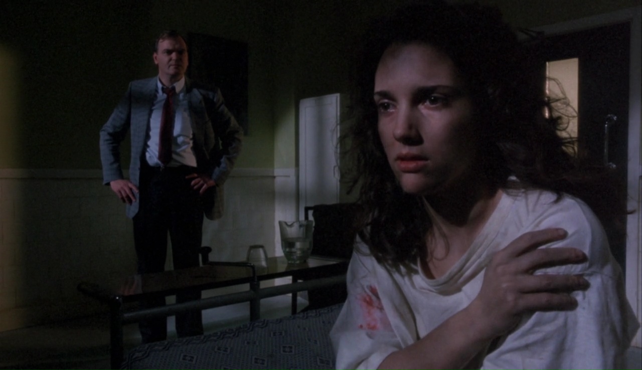 Il lui faut donc trouver des collaborateurs de confiance, et Barker choisira des quasi débutants, mais en qui il a justement cette confiance pour étendre l’univers de sa saga. À la mise en scène, nous avons Tony Randel, qui signe son premier métrage, nous donnant ainsi plein d’espoir pour la suite de sa carrière, qui malheureusement, tombera vite dans l’oubli à coup de petits films peu passionnants (Les Enfants de la Nuit), de suites DTV peu intéressantes (un énième Amityville) et d’un tout juste sympathique Ticks produit par Brian Yuzna. Quand au scénario, Barker confie la tâche à Peter Atkins, qui signe son premier scénario, mais restera fidèle à la saga jusqu’au quatrième opus, avant de tenter sa chance avec une autre saga : Wishmaster. Pour le reste, l’équipe reste la même, Christopher Young reste à la musique et livre d’ailleurs sans doute une de ses meilleures OST, le casting revient quasi intégralement, et c’est parti. Il faut également savoir que Hellraiser 2 a subit les foudres de la censure à l’époque, et que la version non censurée de 1h39 (au lieu de 1h28), reste inédite en France. Oui, 11 minutes en moins, coupant certains passages sacrément gore, mais d’autres efficaces dans le développement des personnages. Des coupes d’ailleurs maladroites, puisque l’on a même l’impression que le son a été coupé à la hache dans le montage cinéma d’époque, mais passons. L’histoire reprend donc pile après le premier film, la même nuit d’ailleurs. Kirsty est sortie de la maison, et se retrouve dans l’hôpital psychiatrique du coin. Julia est morte. Mais le directeur de l’hôpital, le docteur Channard, connait l’existence de la boite, il est d’ailleurs plutôt fan (ouais, chacun son truc), et va se servir des événements pour faire revenir Julia en tuant un de ses patients sur le matelas où la fameuse méchante que l’on aimait détester du premier film est morte.