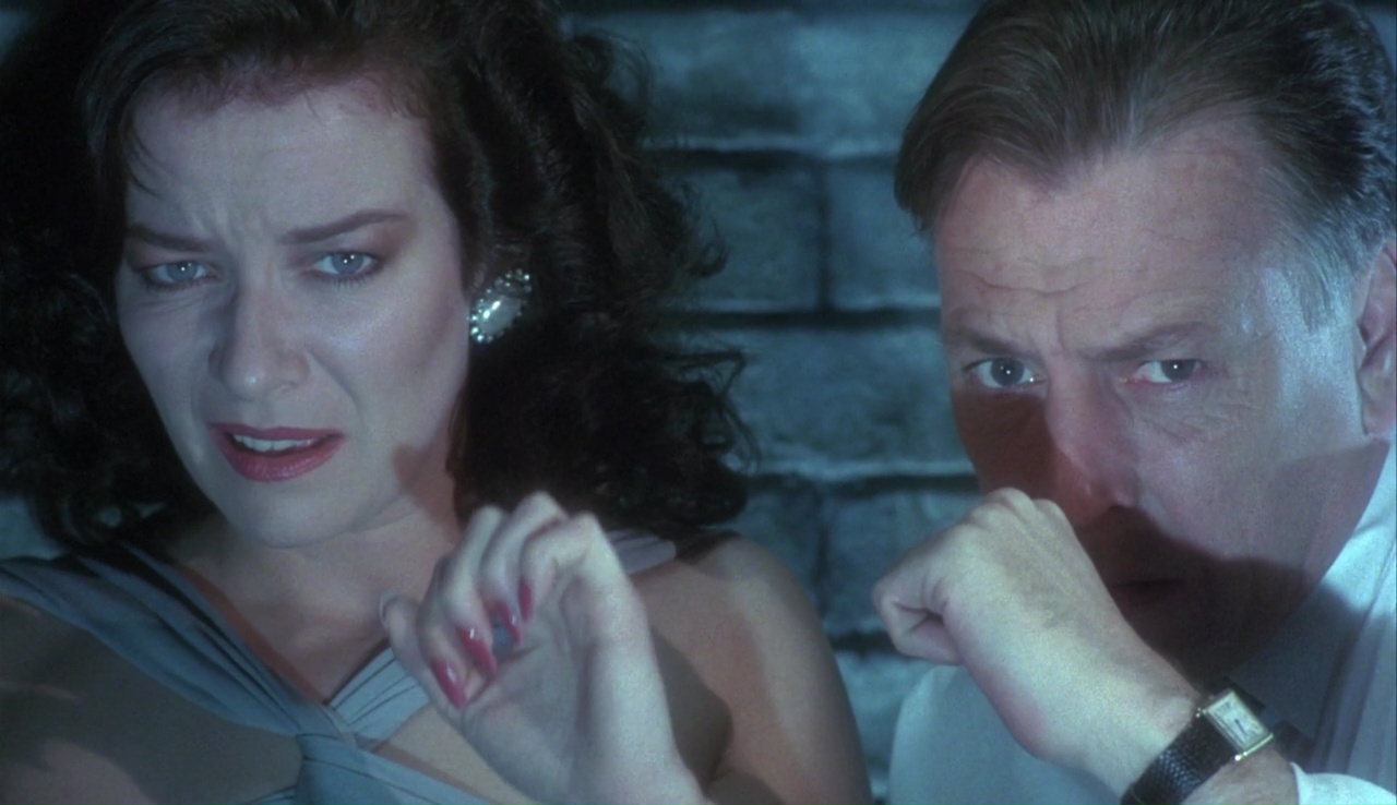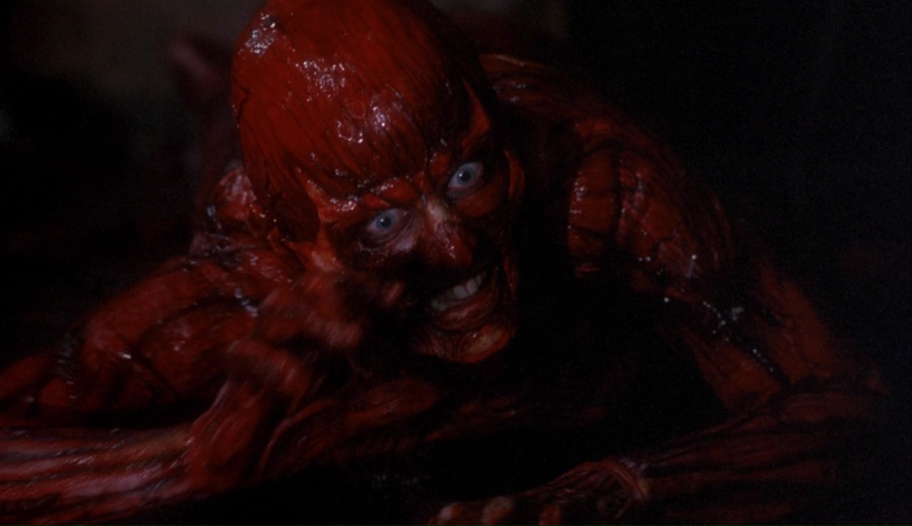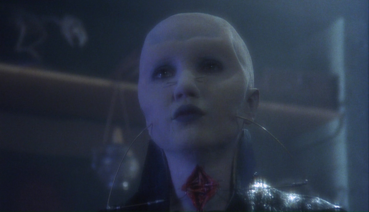 Avec un budget plus élevé, Hellraiser 2 passe du huis clos dans une maison à un quasi huis clos dans un hôpital pour sa première partie, qui il est vrai, a des points communs avec le premier film. Julia revient de la même manière que Franck (les effets spéciaux sont bien impressionnants d’ailleurs), va avoir besoin de sang pour se reconstituer. Oui, tout ça, on le connait. Puis Julia et le docteur Channard pour se servir d’une patiente douée en puzzle pour ouvrir la fameuse boite, et là, Hellraiser 2 change radicalement de son prédécesseur. Terminé le huis clos, terminé les faux semblants, Kirsty poursuivie et victime, le film nous emmène carrément dans l’univers des cénobites. Non pas qu’ils vont être présents à chaque instant, loin de là, mais le métrage nous emmène dans leur univers, et on en apprend donc beaucoup plus, et cette partie s’avère passionnante, malgré quelques effets vieillissants, mais aux idées hypnotisantes pour moi. Oui, l’enfer, ce labyrinthe, ces pièces qui s’adaptent aux vices de chaque personnage, moi, j’adhère à fond. Hellraiser 2 prolonge donc de manière logique les différents ingrédients du premier opus. La plus grande force du métrage sera sans doute d’étendre son univers, mais tout en gardant en arrière plan ce qui doit l’être (les cénobites), et au premier plan ce qui fait avancer l’intrigue (les personnages). En arrière plan, les cénobites sont donc toujours étranges, effrayants, mystérieux, et ça fonctionne. Surtout que le métrage se déroulant dans leur univers, ils peuvent apparaître n’importe où. Néanmoins, on pourra trouver quelques facilités dans le développement des personnages il est vrai, et certains dialogues donnent un aspect étrangement théâtral à certaines scènes. La plus grande perte du métrage, en s’ouvrant un peu plus, c’est qu’il perd son côté étouffant.