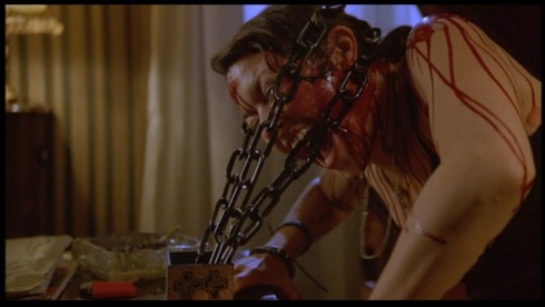 Mais en mettant de côté l’esprit Hellraiser du fan, cet opus parvient tout de même à comporter quelques belles séquences, englouties par un trop plein de ridicule. Certaines scènes sont bien pensées, et le film bénéficie tout le long d’une très belle photographie. Aussi, contrairement aux deux précédents épisodes, on peut noter quelques petits débordements sanglants, même si cela reste bien sage en comparaison des premiers opus, et surtout, très court, sur un film d’une durée d’une heure et demi. Certaines scènes ont pourtant du potentiel, comme le carnage dans le train, qui aurait pu très bien faire penser dans le fond à des films comme Predator 2 ou Faust de Yuzna. Et même si l’on connaît bien Dimension Films pour pourrir le montage des films, cette petite scène sympathique aurait pu retrouver l’esprit du premier, voir fournir une scène sanglante digne de ce nom. Mais il n’en est rien. En fait, plus le film avance, moins on en attend de lui, plus l’histoire lasse, tout comme les rebondissements à la pelle n’apportant rien de neuf, que ce soit envers l’histoire du film à proprement parler que la mythologie. Deader a l’effet d’un profond somnifère.