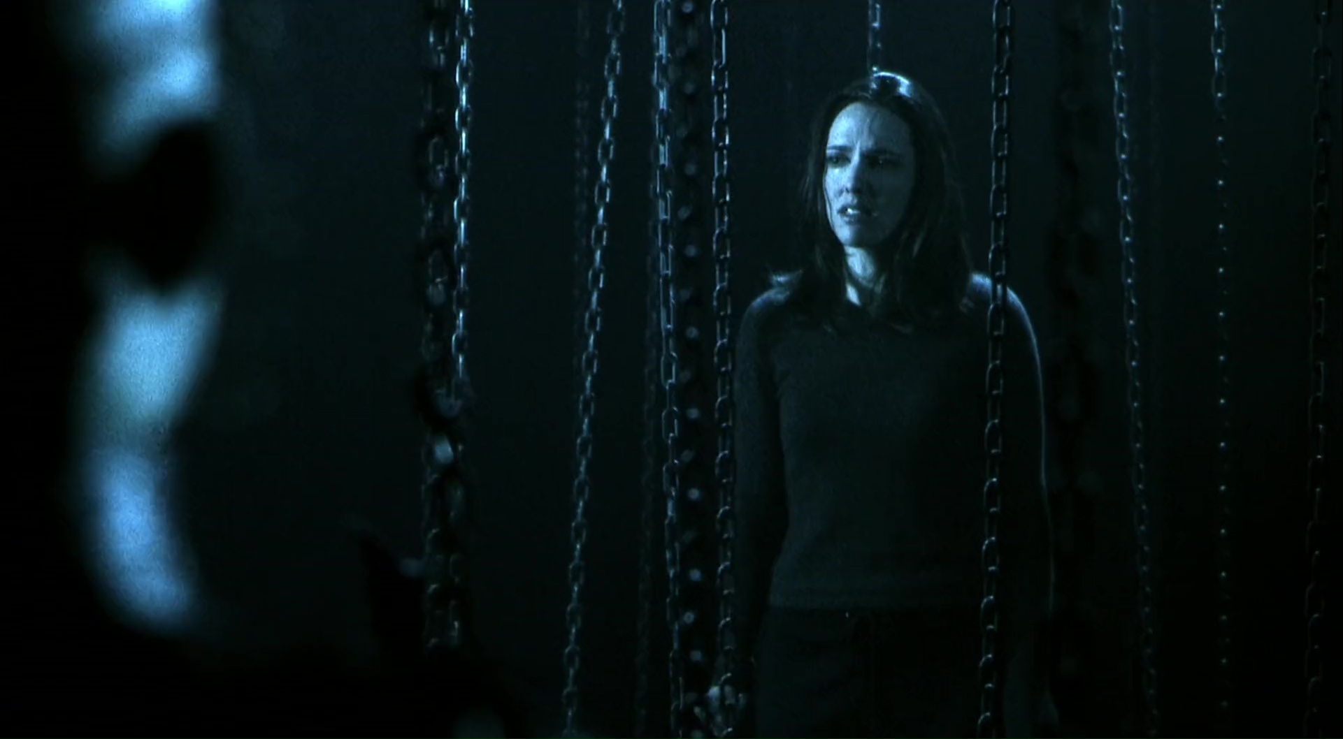 Même si parfois, oui c’est trop long, presque chiant même. Quelques scènes viennent nous réveiller, et le film utilise alors le coup du « mais non c’est une hallucination ». Et encore une fois, c’est dommage, car certaines scènes fonctionnent en soit. La première heure s’articule en tout cas sur cet élément. Des hallucinations, des flashbacks, une enquête qui avance doucement en mélangeant les deux éléments cités. Comme dans Inferno, l’acteur principal, Dean Winters ici, n’est pas le meilleur acteur du film, étant même assez inexpressif, il semble peu concerné par les événements. Alors qu’entre ses hallucinations et le fait que toutes les femmes le veulent, il y a de quoi être expressif. Le personnage va donc dans un sens plutôt bien avec la mythologie Hellraiser. Il est perdu, il couche avec tout le monde, et n’est absolument pas tout blanc comme le final nous le montrera. Et Kirsty donc, je devais y revenir après tout. Non, la jeune femme n’est pas présente que pour la scène d’ouverture (sinon son salaire en mode réfrigérateur serait compréhensible). Même si on constate que son personnage n’est pas pleinement exploité, nous la reverrons dans quelques flashbacks, ou plus tard lors du final. Un final malheureusement manquant de surprises puisqu’encore une fois, totalement identique au précédent film. On pourrait dire que quiconque a vu Inferno a vu Hellseeker. Et ce n’est pas totalement faux. Même narration, même fin mot de l’histoire, même personnage pas très gentil, même côté qui veut se la jouer mystérieux.