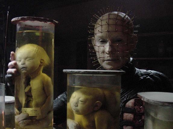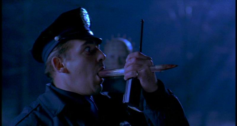 Mais non, il faut en plus qu’ils nous collent un final où finalement, « Ah en fait non, c’est peut-être vrai, ils existent. Non, réveille toi, c’est un rêve ». Et ils jouent là-dessus jusqu’à écoeurements, jusqu’au dégoût le plus total, trainant Pinhead et ses clous dans la boue, trainant également ce pauvre Henricksen dans la boue alors que sa carrière baigne dans les DTV allant du B bien bis au Z bien dégueulasse depuis pas mal d’années. Et Pinhead donc ? Aie aie aie ! Outre des phrases peu inspirées, l’ajout d’une dernière ligne de dialogue de sa part allant vers l’humour le plus consternant et de mauvais goût (rappelant en quelque sorte le ton décontracté du troisième opus) et le fait qu’il prend des allures ici de tueur de slasher, tout ce qu’il n’est pas, et voilà. Pinhead avec un hachoir dans les mains, vous n’en rêviez pas ? Tant pis, ils le font quand même. Doug Bradley semble clairement fatigué du rôle, mais bon, il a dû se dire qu’il fallait bien remplir le contrat pour encaisser son chèque. La saga tombe donc là le plus bas possible, et ne s’en relèvera peut-être pas (réponse en Février avec le dernier, mais entre temps, vous reprendrez bien un peu d’Hellraiser avec Revelations ? Non ….).