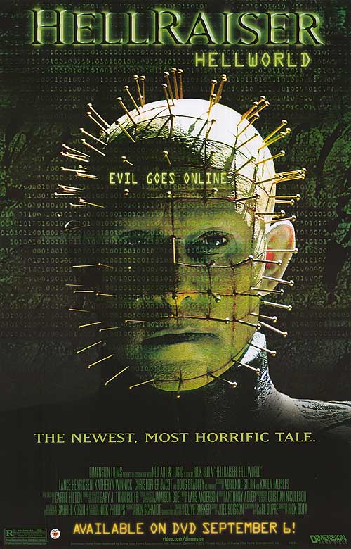 Après une petite pause, il est temps de retourner à cette saga culte pour seulement ces deux premiers opus. Surtout que le trailer du dernier vient de débarquer et qu’au final, ben après les récents carnages, ça a l’air au moins un poil plus sérieux. Hellworld donc, 8ème opus de cette trop longue franchise pourrie par Dimension Films depuis des années… Rick Bota après avoir signé Hellseeker et Deader revient à la barre. En fait non, Deader et Hellworld ont été tournés bout à bout, ça permet d’économiser un peu d’argent lors du tournage Roumain… Et Hellworld, ça donne envie de pleurer. Bon je sais, on pleure depuis le troisième opus en réalité. Si bien qu’après Deader, on se disait qu’il était impossible de faire pire. Et bien fuyez pauvres fous, car Dimension Films et Rick Bota l’ont fait ! Hellworld est pire. Un film qui en plus, joue sur les modes du moment. Car Hellraiser à la base, qu’est ce que c’est ? Un film d’horreur pour adultes, mettant en scène des personnages adultes avec des thèmes qui le sont aussi. Hellworld qu’est ce que c’est ? L’histoire d’une bande de jeunes qui sont fans d’un jeu sur internet. Ah oui forcément, le peu qui restait de la saga est mort. Hellworld est un vulgaire DTV pour teenagers. Ça fait peur. Après une séquence d’introduction dans une église qui prouve qu’à de rares instants, Rick Bota avait du potentiel mais qu’il préfère tourner sans argent sur des scénarios de merde, et un petit jumpscare tout raté, on se retrouve devant l’horrible réalité. Hellraiser est devenu un jeu sur internet, où l’on peut entendre les plus fameuses répliques du premier film en fond sonore. Une bande de jeunes est complétement accro au jeu et gagne des invitations à une soirée concernant le dit jeu.