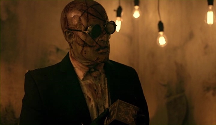 Enfin, plus d’un an après sa finition, le nouveau Hellraiser est là, sortant très discrètement encore une fois par la petite porte, à savoir la case DTV en Amérique. Un épisode de plus tourné pour un budget ridicule (estimé entre 350 000$ et 500 000$, ce qui est toujours plus que le précédent) mais ayant eu plus de temps dans sa préparation, contrairement à l’affreux Hellraiser Revelations en 2011 qui aura eu droit à une production de trois semaines seulement (de l’écriture à la post production, soit tout en gros). Un épisode qui faisait malgré tout peur, mais qui, après un premier trailer énigmatique, me faisait envie. Après tout, la saga était tellement bas depuis des années, qu’est ce qui aurait bien pu arriver de pire que tout ça ? Pinhead a bien été dans l’espace en 1996, puis est devenu un caméo afin de justifier le titre dans plusieurs opus, il a même été online avec Hellworld avant de devenir un clown au mauvais maquillage dans Revelations… La réponse 1h21 après le lancement (oui c’est court). Ben ce n’était pas si mauvais au final. Pas excellent, étrange par moment à force de vouloir explorer de nouveaux horizons, avec un final bien raté, mais qui au moins aura tenté de faire des choix risqués pour ne pas nous fournir une nouvelle fois la même soupe, mais en respectant le fan en nous livrant un film pensé comme un Hellraiser. Et rien que ça, ça fait du bien. Alors oui, comme la bande annonce nous le laissait craindre, une partie de l’intrigue se résume à une enquête policière. Un peu comme les épisodes 5, 6, 7, tout ça. Mais en étant un peu plus encré dans l’univers d’Hellraiser, à savoir un univers glauque et sanglant. Et immédiatement, passé une petite déception, ça passe mieux. Surtout que malgré l’enquête, la mythologie Hellraiser et ce que le réalisateur décide d’en faire, et bien c’est bel et bien présent et ce dés le début, et tout le long.