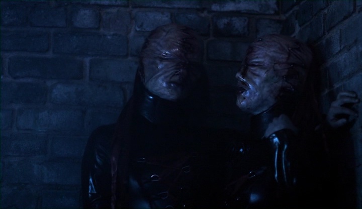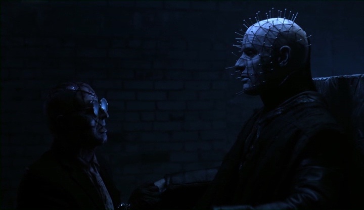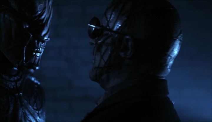 Car soyons clairs, Hellraiser Judgment n’est pas mauvais, loin de là. Son univers visuel compte tenu du budget a de la gueule, l’histoire tient debout et tente de nouvelles choses à défaut d’être originale, les acteurs sont en général bons (même si bon, citer Heather Langenkamp alors qu’elle n’a qu’un caméo), aucune vraie fausse note à noter. Pinhead est crédible, les autres nouveaux cénobites, bien que pour beaucoup en retraits, plutôt pas mal. C’est parfois saignant, parfois même assez crade. Mais en fait, le plus gros défaut du film, le défaut que Gary J. Tunnicliffe a du gérer constamment en tant que scénariste et en tant que réalisateur (et maquilleur aussi), c’est bel et bien son bas budget. Par moment, c’est assez fauché. Visuellement ça a de la gueule, je l’ai dis, mais les lieux sont limités, le commissariat se limite à un petit bureau, l’antre des cénobites à quelques pièces vides, on aura aussi des entrepôts dans le noir complet. Tunnicliffe filme tout ça bien, c’est bien éclairé, mais ça reste malgré tout limité, et par moment, ça se ressent. Un tueur en série avec une dizaine de victimes, mais on ne verra que trois flics dans une pièce. Autre élément qui fâche, la conclusion. Et on le sait depuis, mal finir un film peut sauvagement abaisser un verdict, puisque l’on reste souvent sur l’impression du final. Hors ici, un nouveau personnage introduit prend de l’importance, des changements ont lieux, et si l’idée n’est pas mauvaise, ça ne fonctionne pas. Un peu cheap à l’écran, amené bien trop rapidement pour fonctionner. Et c’est dommage. Mais je le redis, le film a des défauts, mais à ma grande surprise, il n’est pas mauvais. Loin des films originaux, mais tellement mieux que les derniers films.