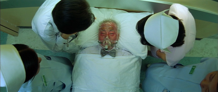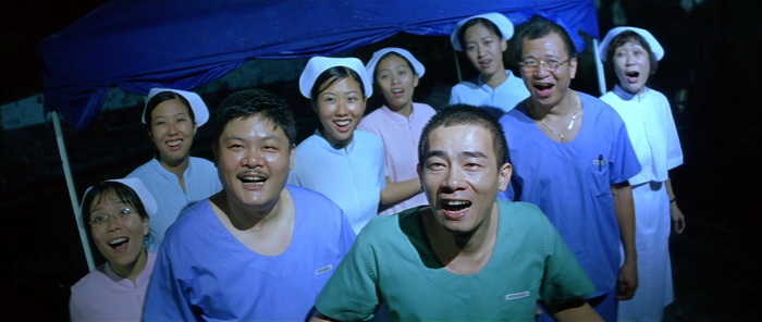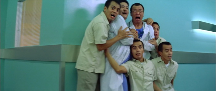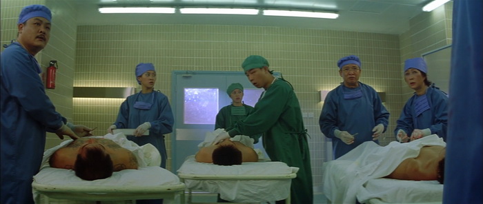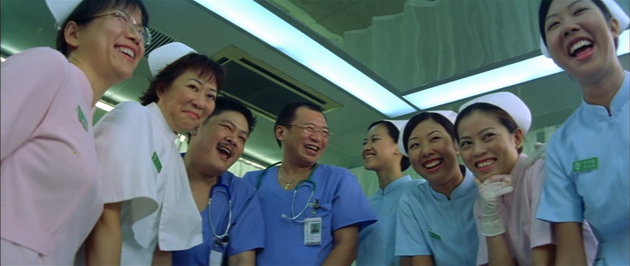 Le film commence par un vieux patient gravement brûlé admis à l’hôpital Sir Kau Kei Ho et qui va subir l’indifférence cruelle de ceux qui y travaillent. Sa situation est d’autant plus ironique étant donné qu’il n’est autre que Sir Kau Kei Ho qui a donné son nom à l’hôpital. Lorsque les employés découvrent qui il est, ils essaient de s’attirer ses faveurs mais il choisit la jeune stagiaire Yan pour tenter de redonner un coup de boost à l’hôpital. Yan, consciente que la plupart de ses collègues n’ont que faire de la situation de leur institution, arrive à persuader son collègue Jim, autrefois médecin passionné par son travail, de reprendre du poil de la bête et, ensembles, ils vont convaincre l’ancien partenaire de Jim, Joe, aujourd’hui mécanicien, de reprendre son poste de docteur. Le trio de choc va essayer de faire le maximum pour remettre d’aplomb cet hôpital et de redonner le goût de bien faire les choses à leurs collègues. Mais les bureaucrates qui dirigent cet établissement depuis des mystérieux bureaux au dernier étage ne le voient pas de cet œil-là, veulent continuer de maximiser leurs profits et vont essayer de mettre un frein à cette révolution que tentent d’imposer Yan, Jim et Joe. Vous l’aurez compris, Johnnie To et Wai Ka-Fai s’attaquent, sous l’angle de la comédie et de la satire, à la manière dont les hôpitaux de Hong Kong font passer les considérations financières avant la santé de leurs patients. L’établissement qui nous est présenté baigne en plein chaos, avec d’un côté du personnel qui fait tout ce qu’il peut pour éviter de travailler, se refilant les patients d’un service à l’autre, pointant pile à l’heure au son de cloche, ne pensant qu’à l’argent, et de l’autre des têtes pensantes décrites et montrées comme des fantômes maléfiques, presque intangibles, constamment dans l’ombre, ne communiquant que par de simples mots sur des papiers, qui souhaitent coûte que coûte maintenir leur système lucratif. Bien entendu, tous les potards sont ici poussés à l’extrême dans un film qui baigne à la fois dans la paranoïa la plus totale et une hystérie de tous les instants. Un film où tout peut arriver, et où tout va arriver.