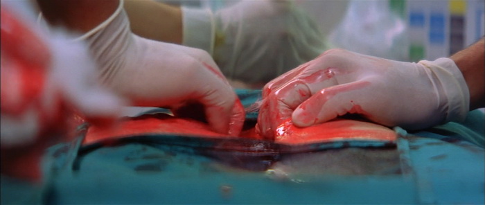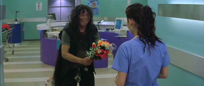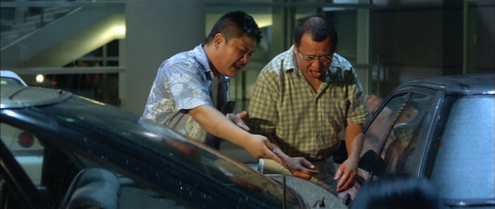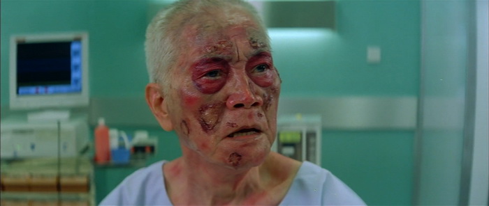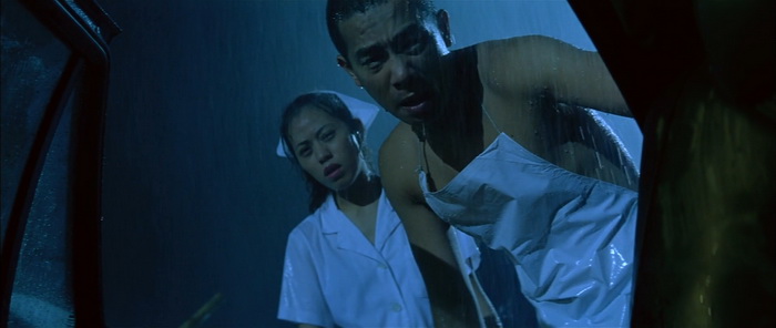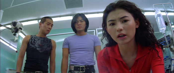 L’une des forces de Help!!! est clairement son casting. Jordan Chan interprète un médecin un peu trop excentrique ; Ekin Cheng (et son brushing) un mécanicien beau gosse / docteur de talent ; Cecilia Cheung la jeune médecin idéaliste pas encore broyée par le système. Le trio déborde d’une énergie réellement communicative et porte le film sur ses épaules. Ekin Cheng, souvent raillé pour son jeu à l’époque, trouve ici un rôle qui prouve qu’il peut réellement jouer. Le casting secondaire n’est pas en reste et les habitués du cinéma de Johnnie To, Lam Suet et Hui Siu-Hung, sont souvent hilarants, aussi bien dans leurs échanges que dans les têtes d’ahuris pas possibles qu’ils arrivent à prendre. La mise en scène de To et Ka-Fai est un véritable terrain d’expérimentation (angles de caméra étranges, couleurs désaturées, montage nerveux, zooms très brusques, …) qui va rendre le film peut-être un peu trop hystérique pour certains, au point qu’on a parfois plus l’impression d’assister à une succession de petites saynètes mises bout à bout, où le grand n’importe quoi bien déjanté côtoie des moments un peu plus crus (on a quelques plans sur des corps ouverts, pas mal de sang). L’humour du film, couplé à ce côté frénétique, est possiblement ce qui a le plus divisé. Et il est clair que certains spectateurs, qui ne se laisseront pas emporter dans le délire, risquent de rapidement être irrités, d’autant plus que tout le monde n’est pas sensible à l’humour cantonais. Et pourtant, bien qu’on ne rit jamais aux éclats, les situations absurdes, l’humour souvent visuel et le dynamisme de l’ensemble emportent clairement l’adhésion. Le changement de ton (bien plus sérieux) pour le dernier acte du film, entamé par la très impressionnante scène de l’accident de bus, va sans qu’on s’en rende compte nous happer jusqu’à cette fin très mémorable qui remet tout en question et qui à elle seule justifie le visionnage du film. Help!!! est un film qui a beaucoup à offrir, peut-être trop, mais c’est ce qui le rend au final accessible aussi bien aux néophytes curieux de ce que peut donner une comédie de Johnnie To, qu’aux amateurs pur jus qui verront facilement plus loin que la farce que la première heure nous présente.