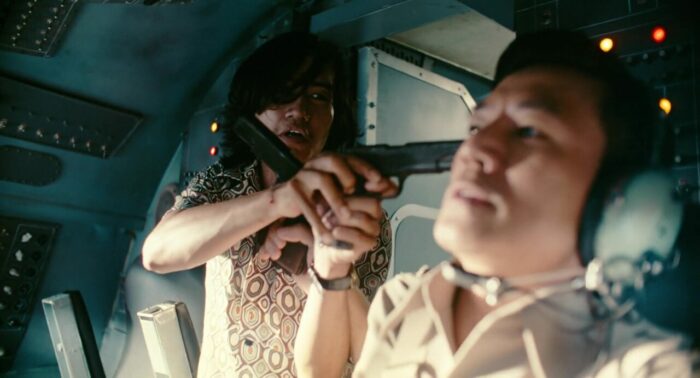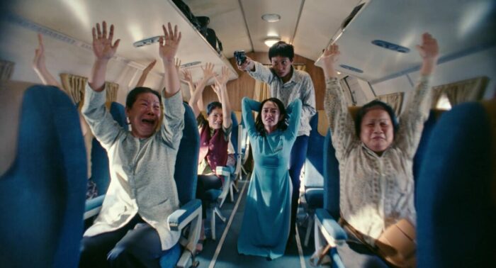Si dans le fond, Hijacked n’est qu’une production reprenant les codes et poncifs d’un genre parfaitement huilé, à savoir le huis clos avec terroristes dans un avion en plein vol, genre qui nous a donné des Air Force One ou Ultime Décision, dans la forme, le métrage Vietnamien est ambitieux. Très ambitieux. Un intérieur d’avion entièrement construit en studio, des extérieurs intégralement en CGI, le premier film d’action Vietnamien à sortir en imax, et une production tellement énorme que la post-production même fut bouclée seulement deux heures avant la première projection presse. Cette ambition, on la retrouve aussi au casting, avec des têtes parfaitement connues du cinéma Vietnamien. Bref, ça inaugurait du bon, à défaut de renouveler la formule. Et au final, Hijacked livre même, osons les mots, du très bon. Mais oui, sans rien renouveler. La recette miracle ? Une réalisation lisible, un montage minutieux, et surtout un sens du rythme qui ne faiblit quasiment pas une seconde du début à la fin du film. Et tout ça venant d’un réalisateur pourtant au départ plus habitué aux comédies romantiques et aux films d’horreur. Réalisateur d’ailleurs qui ne se contente pas de réaliser, mais signe également le scénario et le montage du film. Hijacked, c’est donc clairement son bébé. Un bébé qui s’inspire d’événements réels ayant eu lieu en 1975, le détournement de trois avions pour être précis. Ici, seulement deux avions. Pour le contexte, rien de plus simple, en 1975, l’administration Américaine a autorisée des réfugiés Vietnamiens à se rendre dans des pays alliés pour fuir le pays. Ce qui donna des idées a quelques personnages pour détourner des avions. Et dès l’ouverture du film se déroulant en 1977 sur un premier avion, le film montre sa note d’intention. Un côté crédible, hyper réaliste, une violence sèche quand elle débarque et qui n’hésite pas à y aller à fond, et une belle gestion de l’espace pourtant très limité.