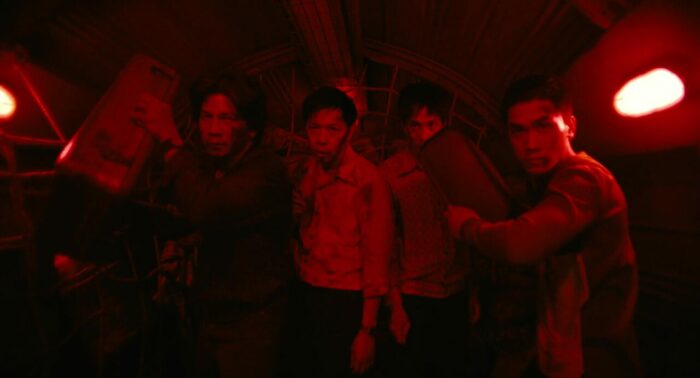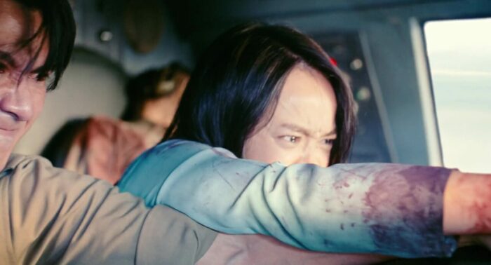 Et surtout, ce récit, simple et bien connu, il parvient, grâce donc à cette efficacité, son côté visuel carré et net, et son rythme, à avoir un petit côté viscéral qui fait bien plaisir. C’est violent sans aller dans l’excès, réaliste tout en se permettant quelques excentricités, et ça fonctionne, surtout que le casting dans son intégralité donne de sa personne, et le tournage a dû être au final sacrément physique pour eux, même si pour certains comme Ma Ran Đô, ils sont habitués, vu qu’il était la même année dans le fameux Chase for Amber. Hijacked, divertissement parfait made in Vietnam donc ? Dans le fond, oui, même si les défauts, ils sont malgré tout là. L’ambition folle du projet joue parfois contre lui, car au final, si tout ce qui se déroule dans l’avion est maitrisé et même jouissif, il faut avouer que les CGI dès lors que l’on sort de l’avion, que ce soit pour voir l’avion dans le ciel, tanguer, atterrir, ou se faire suivre par un avion de chasse, et bien ça manque clairement de naturel, ça a un aspect beaucoup trop lisse et lumineux pour sonner vrai, et c’est bien dommage. On quitte l’action sèche et viscéral pour des images à l’opposé du reste, lumineuses. De même, et ce même si beaucoup de personnages finissent, au choix, morts ou sévèrement blessés, le film se permet un happy ending presque un peu trop niais vu les circonstances et ce qui arrive à certains personnages. Pour ce genre de divertissement, cela reste malgré tout uniquement une petite tâche dans un métrage parfaitement bien rodé, et qui pourrait facilement s’exporter en prime, mettant de côté l’aspect souvent exotique des productions Vietnamiennes, tout comme leur humour, totalement absent. Et cela reste l’une des excellentes surprises de 2025.