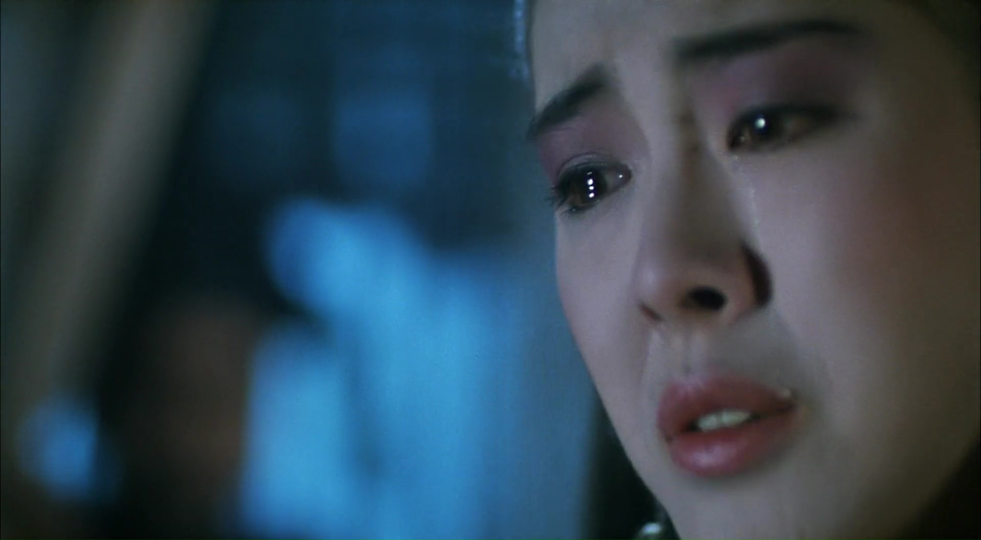Bref, une porte d’entrée parfaite. Et qu’en est-il plus de 30 ans après ? Et bien voilà, pour avoir redécouvert ce film, enfin en HD, avec un son qui pète bien (7.1 s’il vous plait), je peux dire que le film reste un grand film, et que je l’ai savouré toujours avec ce grand sourire collé au visage. Oui certes, le budget était limité, et certains moments à effets spéciaux montrent à présent, surtout dans une magnifique copie restaurée, leurs limites. Par moment, le film utilise de vieilles techniques de stop motion, et si cela a son charme, et bien il faut l’avouer, ça a pris un coup de vieux certains. Pareil finalement pour certains passages se voulant plus comiques, comme ce passage nocturne chez le juge, joué par Wong Jing, un peu lourd et finalement peu utile à l’intrigue. Mais pour ce qui est du reste, Histoires de Fantômes Chinois n’a absolument pas perdu de sa superbe, loin de là. La magie est toujours là, et opère. Entre la mise en scène dynamique, la photographie abusant du bleu donnant un cachet surréaliste (ou fantomatique ?) à l’ensemble, et ces acteurs charismatiques qui portent clairement le film sur leur épaule. Rah, il est difficile de parler du film tout en cherchant à rester objectif.