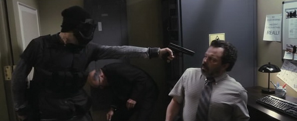 Si je parle de Cluedo, ce n’est pas un hasard étant donné que le scénario, plutôt bien écrit au demeurant, est vraiment fait pour semer le doute tout le long du film sur qui tue des gens dans la banque alors que, à première vue, tous les protagonistes sont bel et bien présents à l’image. On sait pertinemment que le réalisateur veut nous perdre, en nous amenant régulièrement sur des fausses pistes. Même si le panel diminue petit à petit à fur et à mesure que les personnages meurent, le doute persiste jusque dans les dernières minutes. On s’en doute un peu tout de même mais on est à aucun moment sur à 100%.