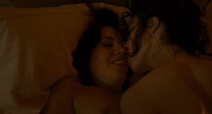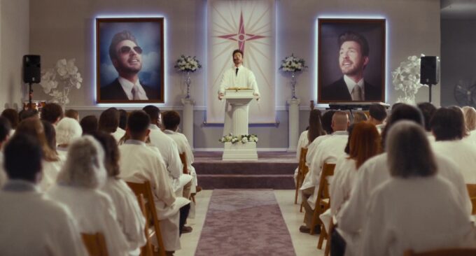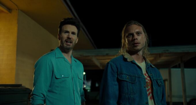 Vous noterez les guillemets pour le mot « intrigue ». Car ce que le film raconte, c’est à la fois hyper simple et hyper compliqué. Honey O’Donahue est détective privée, lesbienne, et la personne avec qui elle avait rendez-vous pour du travail est retrouvée morte, dans une voiture. Accident de la route ? Sauf que non, on l’a vu en ouverture, tout est compliqué, c’est un meurtre. Honey va donc enquêter car elle n’a pas grand-chose d’autre à faire, en profiter pour coucher avec une flic jouée par Aubrey Plaza, se retrouver à interroger le chef d’une secte joué par Chris Evans qui semble avoir un lien avec plusieurs incidents ou meurtres. Ah et la nièce aussi d’Honey disparaît du jour au lendemain, et il y a aussi le père d’Honey qui débarque au même moment, et une tueuse Française, tout le monde finit un peu dans le lit de tout le monde, ça couche, ça crie, ça tue parfois, et au final, ça ne mène à rien, rien n’est résolu, aucun personne ne sort grandit de tout ça, personne n’a d’arc narratif, et on assiste assez médusé presque à un non-film. 1h30 de vide. Ça veut raconter plein de choses, mais en réalité, on a plus l’impression que le métrage enchaine les scènes un peu n’importe comment pour donner l’impression qu’il se passe des choses, sans jamais rien relier ni rien. Et comme on s’en doute, en plus de donner un aspect parfois vide et décousu à l’ensemble, ça donne aussi surtout au métrage un côté extrêmement chiant, extrêmement statique. Si bien que quand parfois, le film doit se bouger et sortir de son bonnet un twist et conclure, on en vient à se demander ce qu’il passe, tant tout semble sortir d’on ne sait où, sans aucune préparation ni logique. Alors dans tout ce bordel chiant comme la lune, certains tentent d’y croire.
