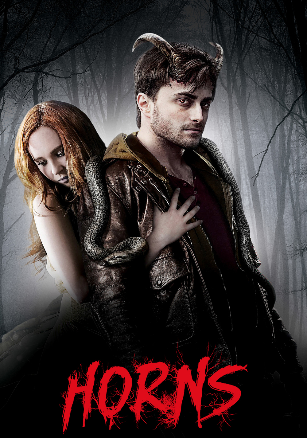 La très belle musique de Rob (déjà compositeur de la sympathique ost du remake de Maniac, produit par Aja) complète ses moments, donnant une dimension nostalgique et plutôt jolie à cette histoire d’amour. Entre romance et comédie, Horns joue sur des tableaux insoupçonnés. Occasion de trouver également pour des scènes assez poignantes James Remar (Dexter) dans le rôle du père. Fort sympathique, le film franchit le cap de la première heure avant de changer de nouveau de genre, pour aller dans le fantastique pur et dur. Ig va vouloir trouver le tueur, se venger de lui et de ceux qui ont causés du tort à sa petite amie. Évolution logique de l’histoire, le film commence déjà à perdre quelque peu en identité et part alors dans quelques délires (les serpents) qui, bien qu’allant dans le sens de l’histoire, ne parviennent pas à totalement convaincre. De très beau film sur une histoire d’amour agrémenté de notes d’humour noir, on passe à un film fantastique beaucoup plus banal, mais l’ensemble se tient toujours, se faisant sobre la majeure partie du temps.