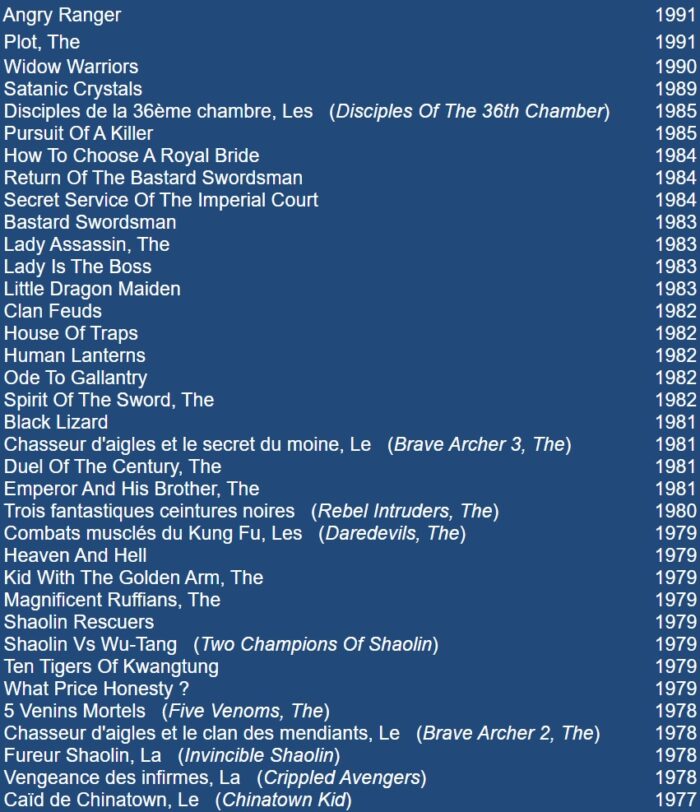 Fin d’une époque pour un certain nombre de ses participants, House Of Traps est une belle réussite – sans être un chef-d’œuvre – qui satisfera amateurs des Venoms et du Chang Cheh de la fin des années 70.