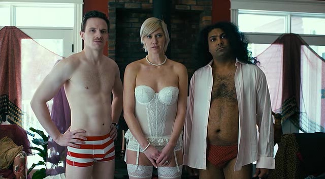 Et dans cette galerie de personnages improbables, tous les acteurs semblent s’amuser à être là. Jewel Staite, surtout connue pour des séries (Stargate Atlantis, Firefly) joue Cassie, cette auteur écrivant au final sur ses fantasmes. Face à elle, on retiendra surtout le couple joué par Ennis Esmer, amoureux de Cassie, et Lauren Lee Smith, jalouse au possible et à la base de l’idée de l’orgie. Et bien entendu dans le rôle de la seule vraie « cochonne » du film, Katharine Isabelle. Mais le métrage est-il si drôle que ça ? Et bien au final, non. On espérait un film tordant, plein de quiproquos, de moments coquins, et le métrage opte plutôt pour la voie de la comédie un peu sentimentale qui n’essaye jamais d’amener des situations trop grosses pour garder un côté réaliste. Oui, il n’y aura pas d’accumulations ou de moments bien pervers façon American Pie, mais plutôt des adultes coincés qui essayent de penser qu’une orgie, c’est à la portée de tout le monde. Sauf que non, pour des raisons X ou Y. La jalousie de voir la personne qu’on aime se faire toucher par quelqu’un d’autre, sentir le regard des autres sur soit, tenter d’approcher quelqu’un qui à la base n’a aucune attirance pour nous.