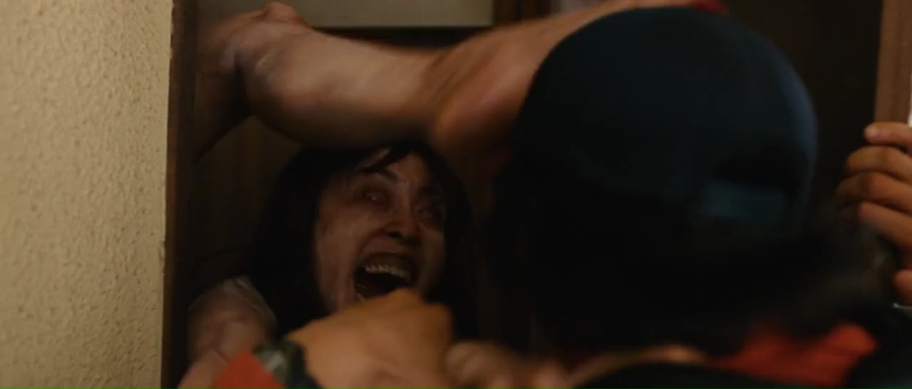 Oui, après tout, le métrage dépasse de peu les 2h, et quelques petites longueurs s’invitent dans le récit. Autre petit point assez dommage, le personnage introduit assez tôt de Keiko, la lycéenne, qui a un fort potentiel mais qui est alors totalement délaissé dans la seconde partie, alors qu’il aurait du permettre des scènes inventives et surtout sacrément fun. Mais ne gâchons pas notre plaisir, puisque I Am a Hero est une bobine plutôt excitante, entre sa première partie au ton léger mais plutôt impressionnante lorsque nos personnages fuient Tokyo, et sa seconde partie qui se lâche totalement dans l’hémoglobine, le tout avec un personnage principal au final plutôt attachant. I Am a Hero, pour une production de ce genre, avec un vrai budget derrière, est même un film plutôt osé, et c’est bien pour ça qu’il fait du bien et surprend. Du coup, pour son fun, sa maîtrise et sa générosité, malgré ses défauts, et bien je le préfère largement à Dernier Train pour Busan. Ici, pas de sentiments, de famille, de romance !