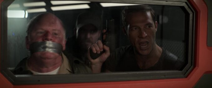 Rien de bien surprenant, ni rien de franchement motivant. Comme je le disais en introduction, on a vraiment l’impression de voir un petit DTV fauché des années 90, avec principalement une pièce pendant 80% du film, à savoir le centre de contrôle de la base, et seulement une poignée d’acteurs, la plupart des seconds rôles périssant rapidement, et le film se retrouvant être un banal film d’action doublée d’une partie de cache-cache entre trois ou quatre acteurs. On économise comme on peut ma bonne dame. Est-ce mauvais ? Alors pas totalement, car un peu comme à l’époque, le film a été tourné à l’économie, et donc ménage ses effets. Quasiment pas de numérique, de vrais décors même si très peu nombreux, des acteurs qui font ce qui peuvent avec ce qu’on leur donne, c’est-à-dire certes pas grand-chose, mais pour ce genre de métrage, ça suffit amplement. Elsa Pataky, à défaut d’avoir fait de grands choix de carrière, semble s’investir dans ses rôles, notamment physiquement, pour les scènes musclées. En parlant de scènes musclées, le scénario est à l’image de l’action. Non pas que l’on attendait Interceptor pour son scénario, mais que sa narration étant très classique, rien ne viendra surprendra. Les situations s’enchaînent, et comme tout va vite, le danger n’est que ponctuel, et très rapidement contrecarré, avant le prochain danger, ou le prochain ennemi. Au moins, tout ça ne dure qu’un poil plus de 90 minutes, le minimum syndical donc, et a donc la gentillesse de ne pas prendre trop de notre temps. Par contre, aussi moyen et basique soit le spectacle, il faudrait dire au compositeur que sa partition pour le final, elle est quand même à chier ! Tout comme les scènes de Chris Hemsworth, mari d’Elsa Pataky, et accessoirement producteur du film à la « gloire » de sa femme.